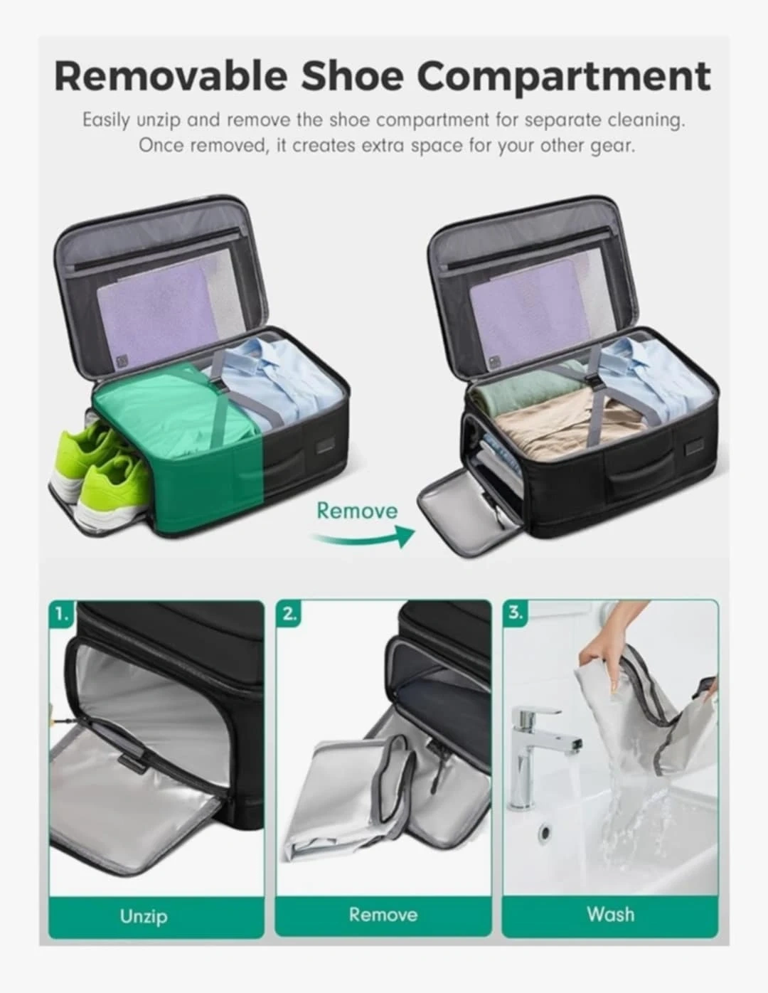 Vancropak Black Travel Backpack with Removable Shoe Compartment
