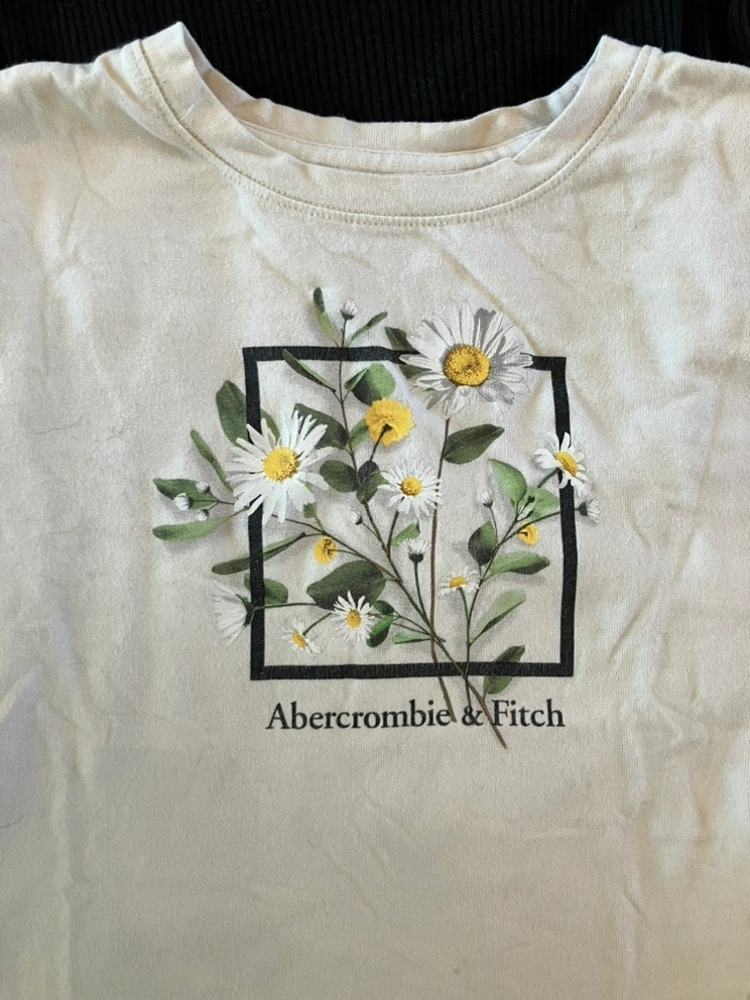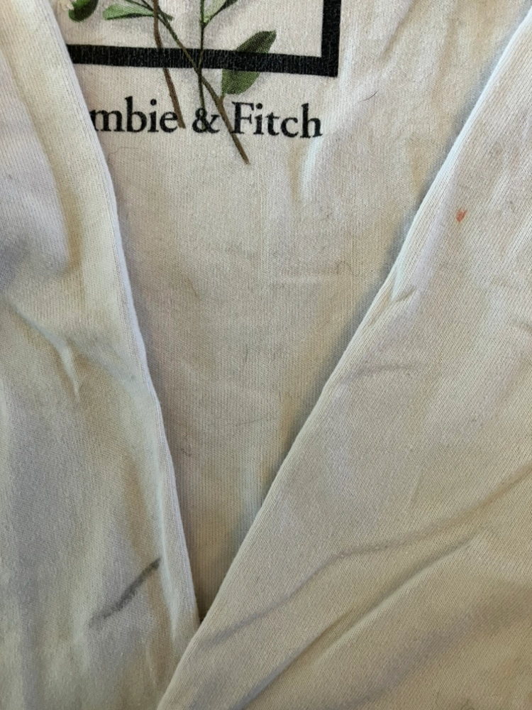 Abercrombie Kids cream long sleeve shirt. Fits boxy, slightly cropped and reaches the waist. Sleeves are cuffed and material is very soft. 2 marks on the back of the arms as shown in second last photo. Size 9-10