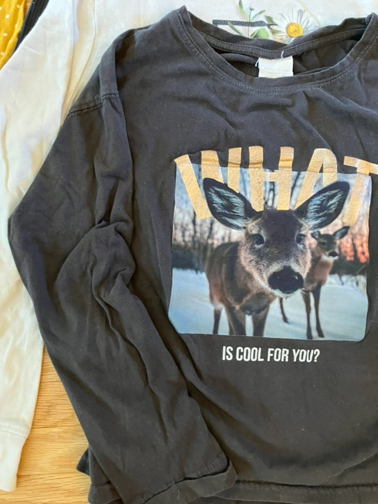 Zara Kids black washed long sleeve graphic shirt. Fit is boxy and sleeves roll at the end. Picture of a cute deer! Size 9