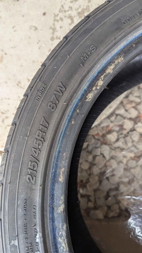 Selling a pair (2 tires) of 215/45R17 all-season tires (Centara Vanti HP). Used, but good tread remaining with even wear overall. M+S rated. Great budget option if you need something quick and affordable. Size: 215/45R17, Load/Speed: 87W, Brand: Centara Vanti HP. $60 for the pair.