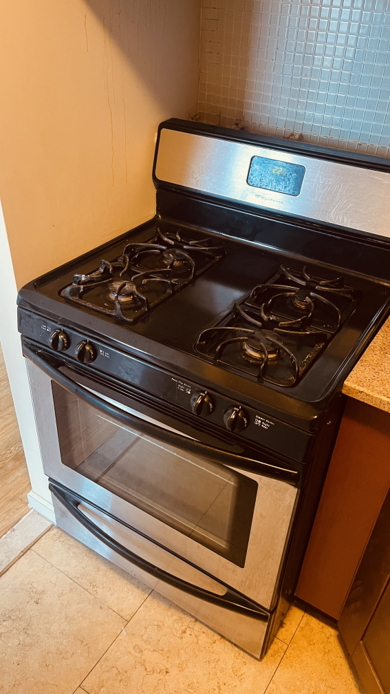 Selling a used gas range oven with a stainless steel finish. It's in good working condition and ready for a new kitchen. Perfect for cooking up your favorite meals!