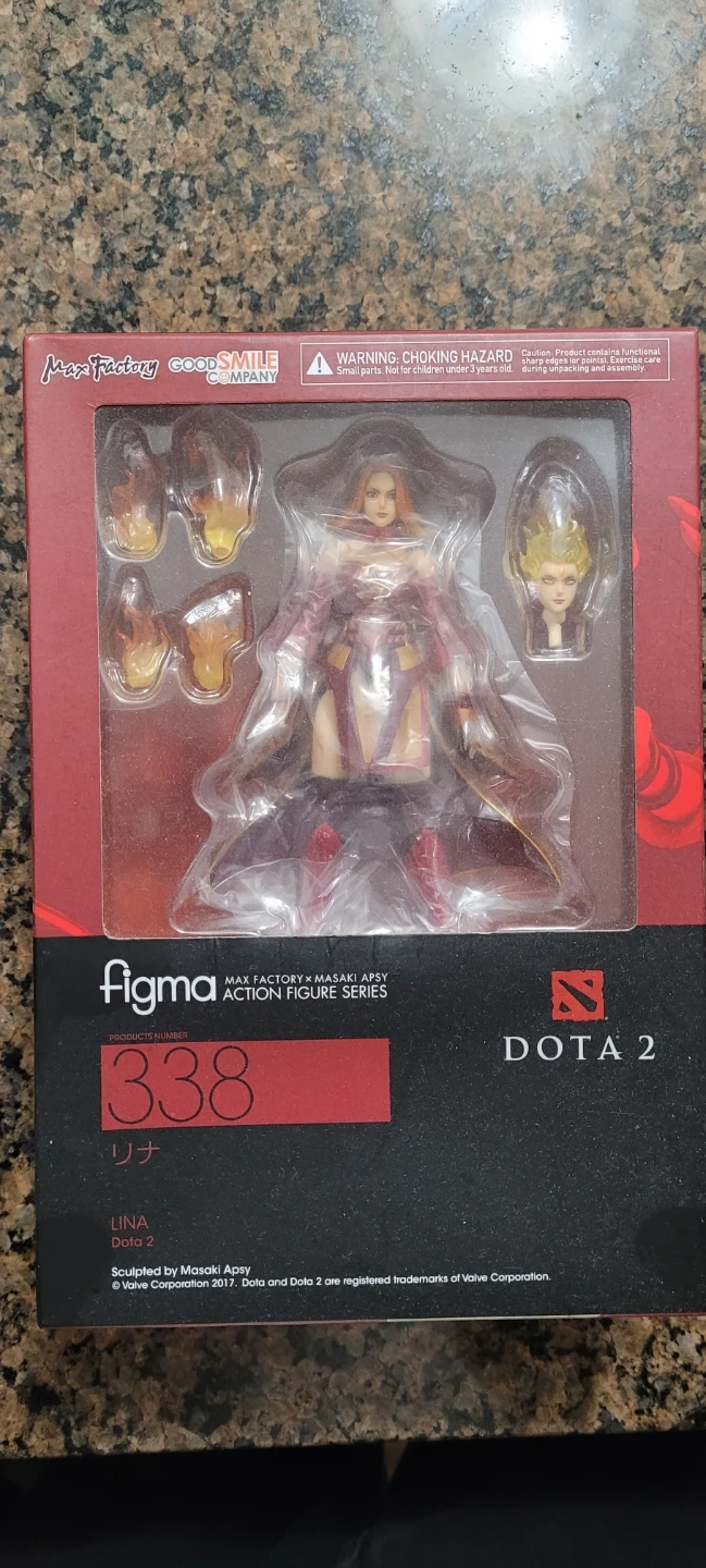 Selling a figma Lina action figure from Dota 2. It's in great condition and comes with all the original parts and packaging. The box includes the figure and accessories as shown in the pictures. It's part of the Max Factory x Masaki Apsy Action Figure Series, product number 338