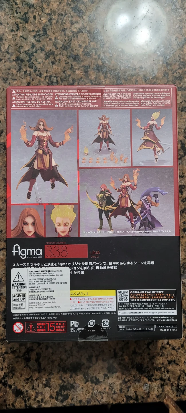 Selling a figma Lina action figure from Dota 2. It's in great condition and comes with all the original parts and packaging. The box includes the figure and accessories as shown in the pictures. It's part of the Max Factory x Masaki Apsy Action Figure Series, product number 338