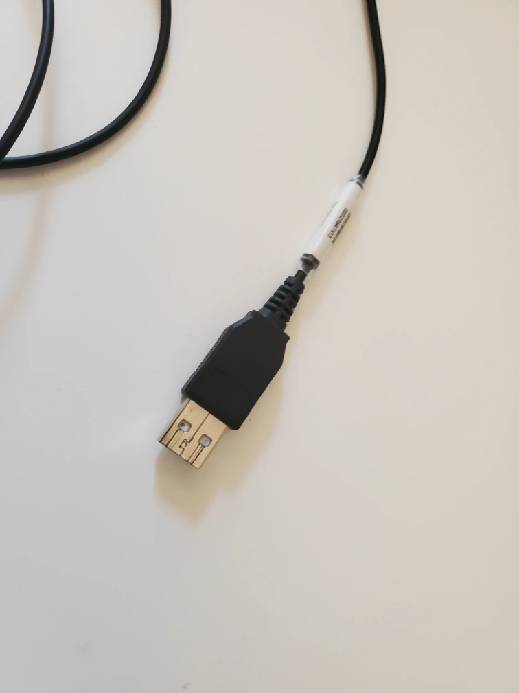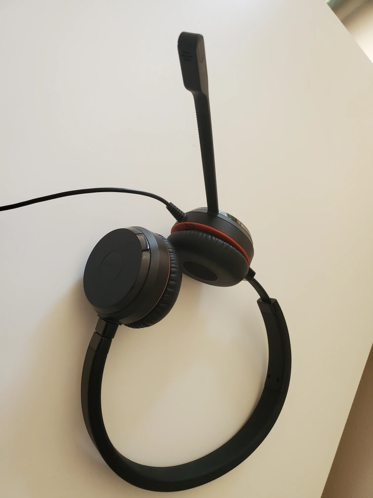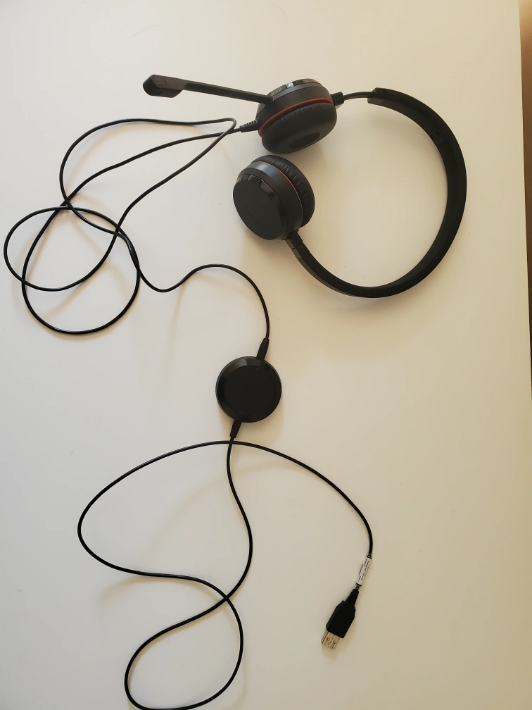 Jabra corded headset. USB connection. Mute and volume control built into cord. total cord length is 210cm.