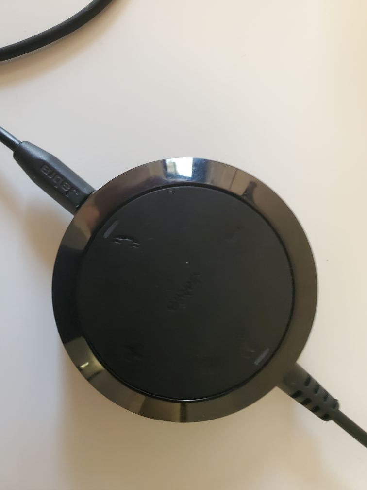 Jabra corded headset. USB connection. Mute and volume control built into cord. total cord length is 210cm.