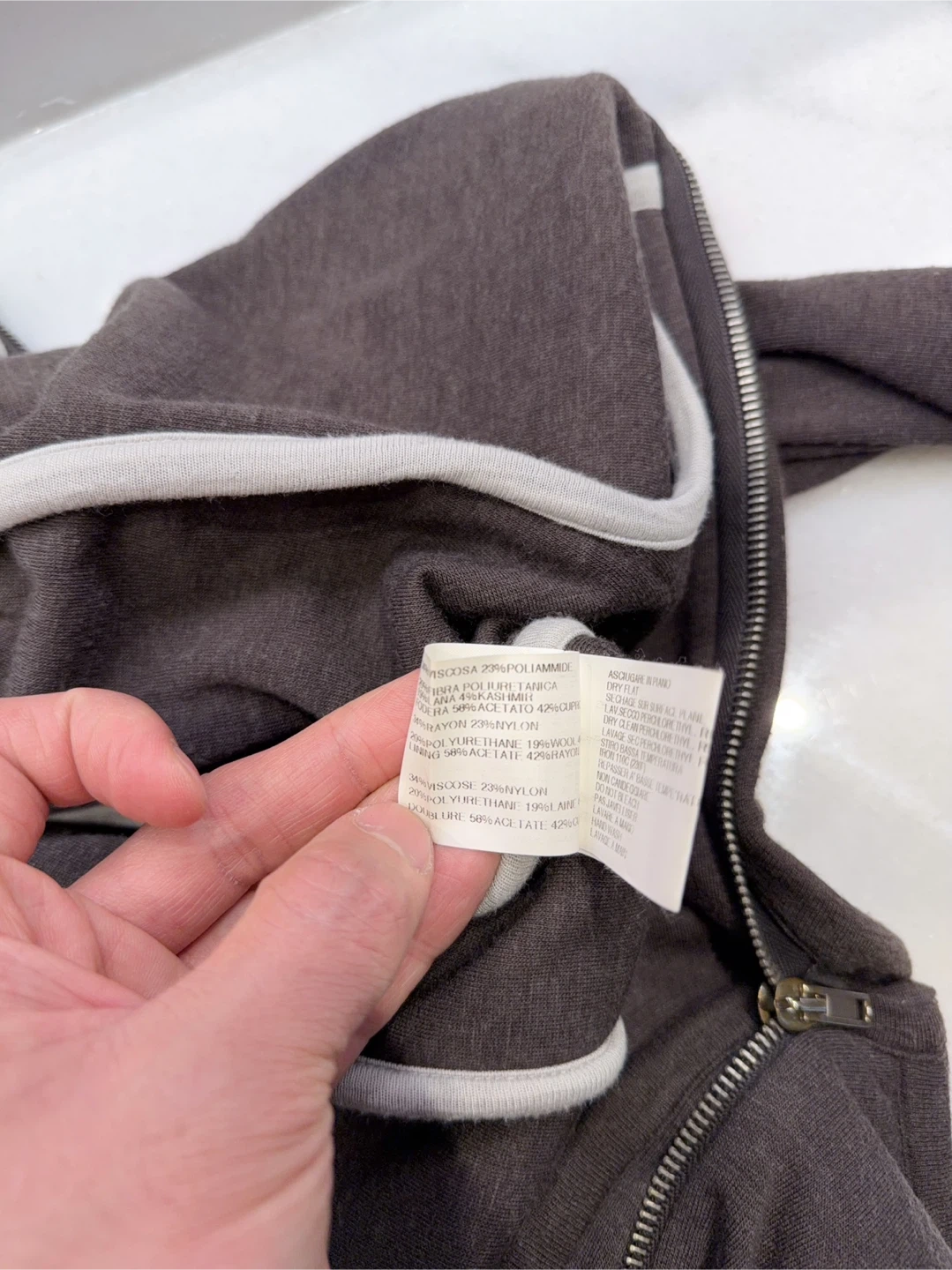 Softer, comfortable material. This is a women’s US size 12 but fits very small. It’s more like a women’s size 8. If you’re a man and wears size small, this would fit you also. This was one of my first Rick Owens pieces. Unfortunately, I don’t fit in it anymore.