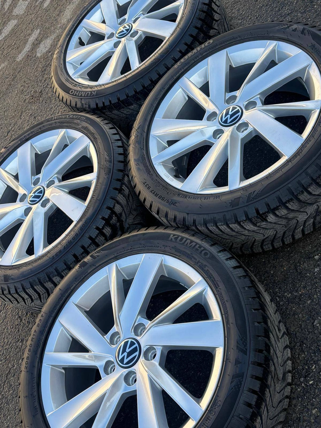 Set of four Almost NEW Authentic 17 inch Volkswagen / Audi wheels with almost new 205 50 R17 Kumho Wintercraft Ice WI-31 snow / winter tires mounted and balanced on them