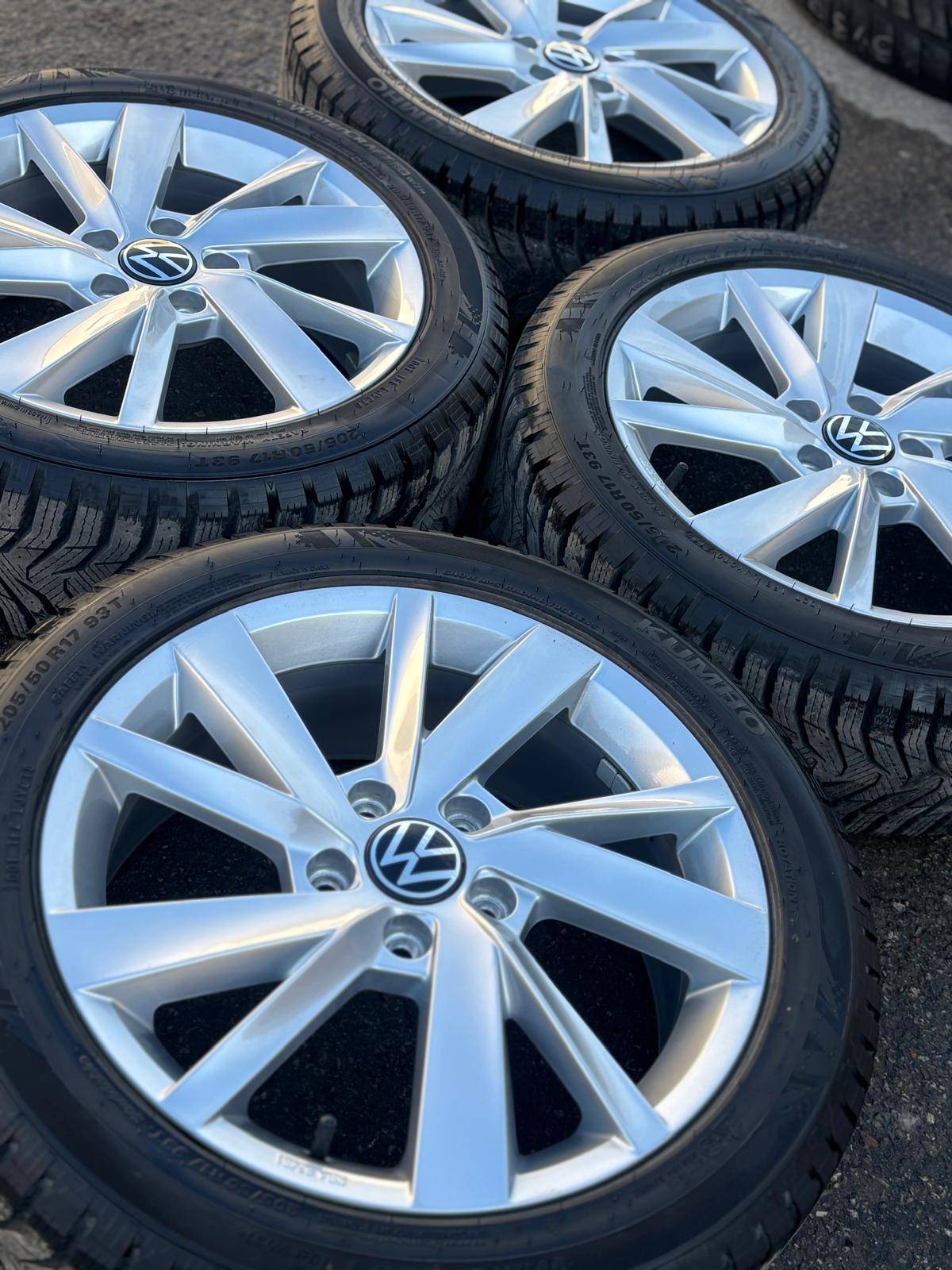 Set of four Almost NEW Authentic 17 inch Volkswagen / Audi wheels with almost new 205 50 R17 Kumho Wintercraft Ice WI-31 snow / winter tires mounted and balanced on them