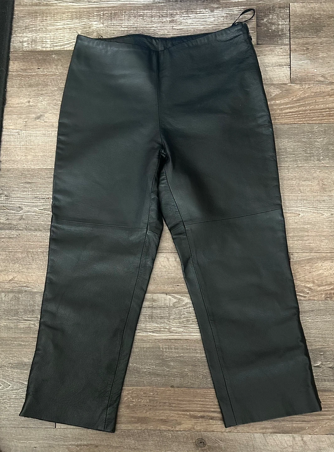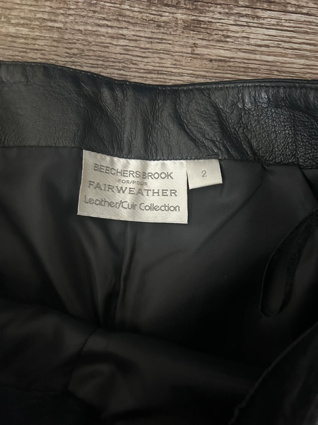 Black leather pants from Fairweather's Beecher's Brook Collection. Shell is 100% leather with a 100% nylon lining. Size 2.