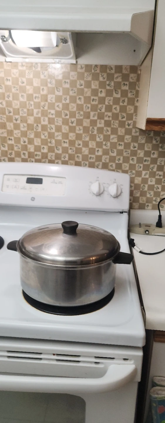 This stainless steel stock pot comes with a matching lid. It's a versatile pot suitable for a variety of cooking tasks. Stainless steel construction.