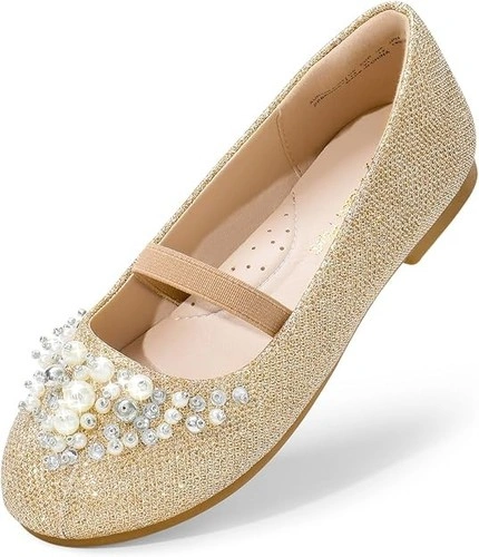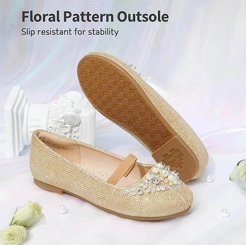 Beautiful Design: These adorable girls’ flats are adorned with pearls and rhinestones, making them perfect for every little princess who loves fancy and sparkly shoes. Elastic Strap: Simple to slip on these dress shoes for girls are designed with a stretchy strap, keeping feet securely in place and preventing them from slipping off. Stable Footing: Designed with a slip-resistant and lightweight outsole for greater stability and flexibility. Enhanced Comfort: A soft PU-covered latex insole provides optimal support and cushioning. Plus, a padded collar prevents chafing and offers additional comfort. Let me know if you're interested!