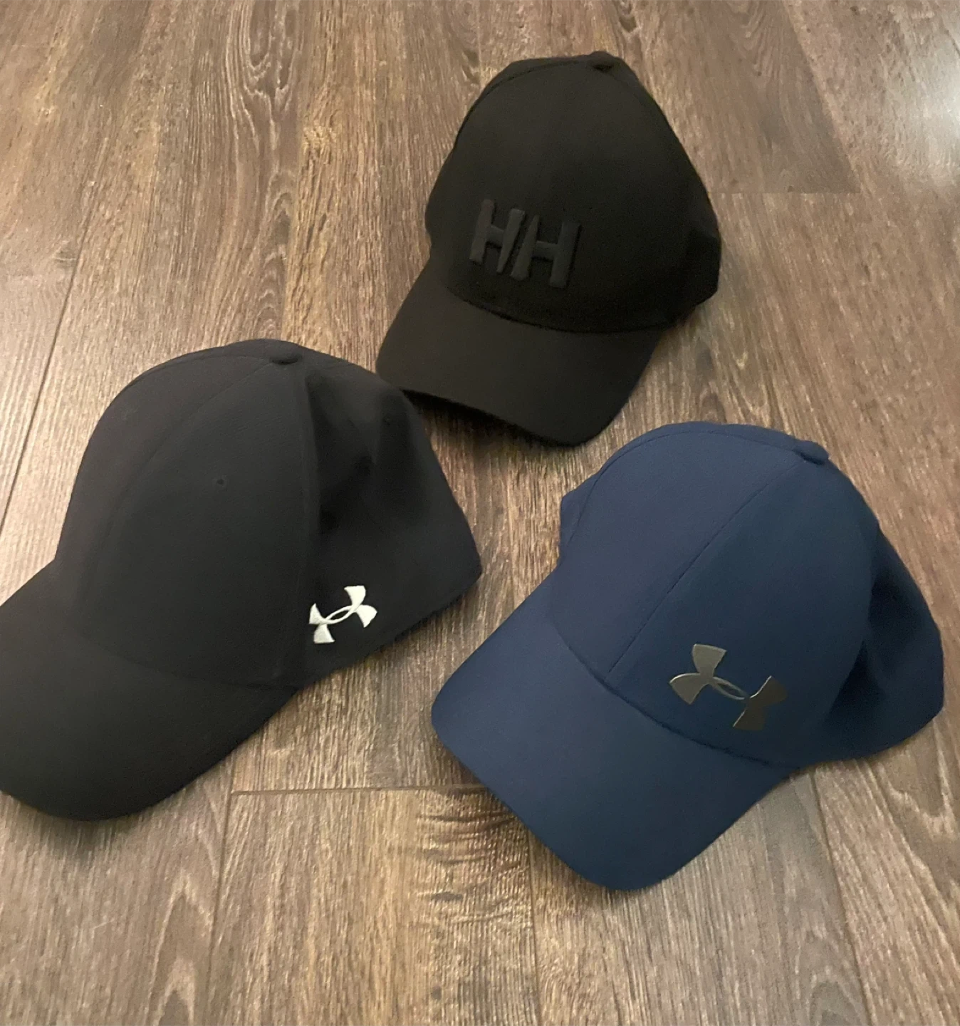 Two are Under Armour and feature the signature logo. One is a black Helly Hansen cap with an embossed 'HH' logo. They're perfect for everyday wear and keeping the sun out of your eyes!