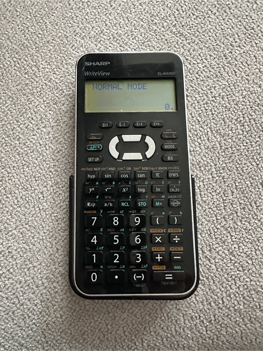 Sharp WriteView EL-W535X scientific calculator. Features include Normal Mode and a WriteView display. This calculator has a full keypad with numerical and scientific functions.