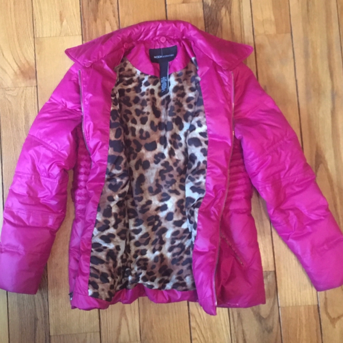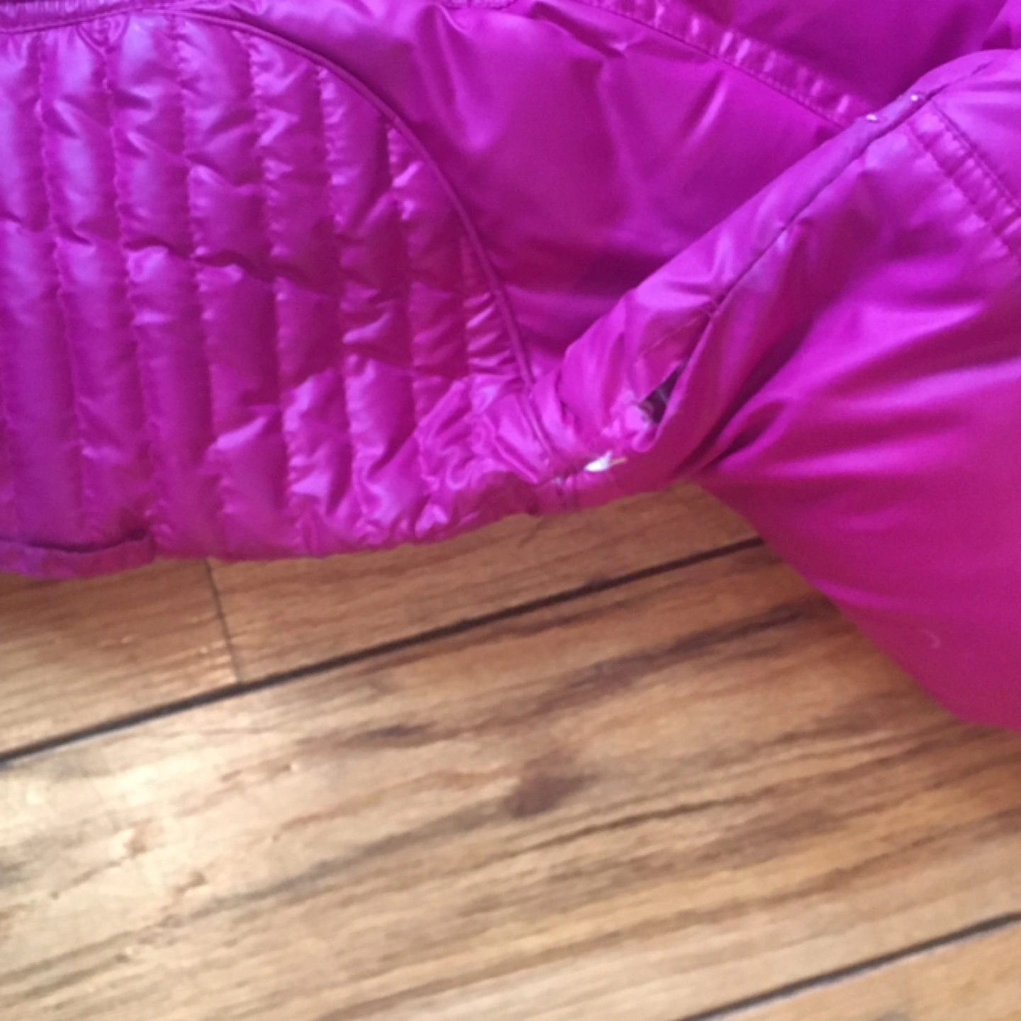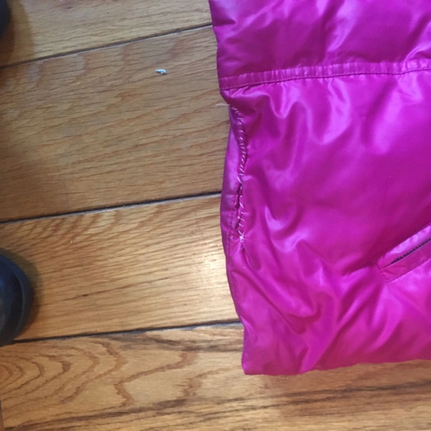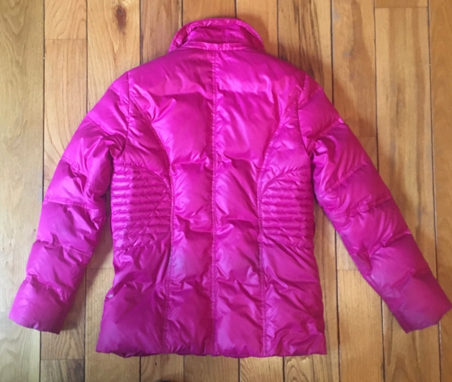 Comfortable and warm pink puffer jacket. Has become too small for me.