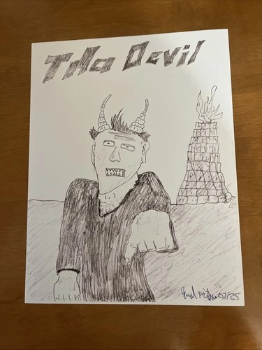 Elevate your space with the unique flair of urban art, brought to you by Garred McIntyre's "Tha Devil Print." This original piece, crafted in 2025, showcases the intricate world of cartoon-inspired creativity on a modest scale, perfect for adding a touch of rebellion to any room. Sized at a convenient 11 inches in length and 8 inches in width, it's an ideal fit for a standout display. Constructed with a blend of cardboard and paper, and produced through a meticulous pencil-and-print technique, this artwork captures the essence of contemporary expression. The bold subject matter of actors is rendered in a style that embodies the vibrant energy of modern artistic themes. Add this piece to your collection and own a slice of current artistic trends. I also have one quality art paper print for $2.00 less.
