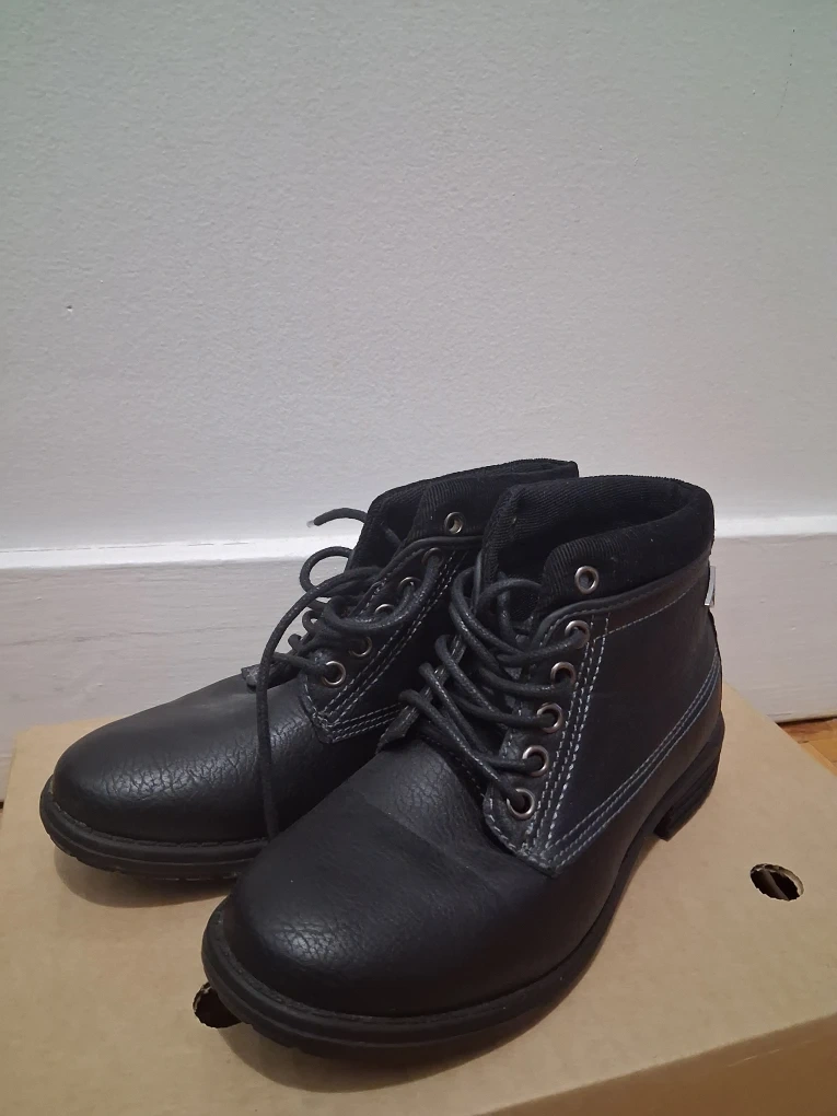 Selling a pair of Soviet Fleet 63 boots in black for women. They are a size 4 UK, which is equivalent to a Euro size 37 (in Canadian is 6). The upper and sock are made of textile, and the outsole is made of other material. The boots are in good condition and great for winter