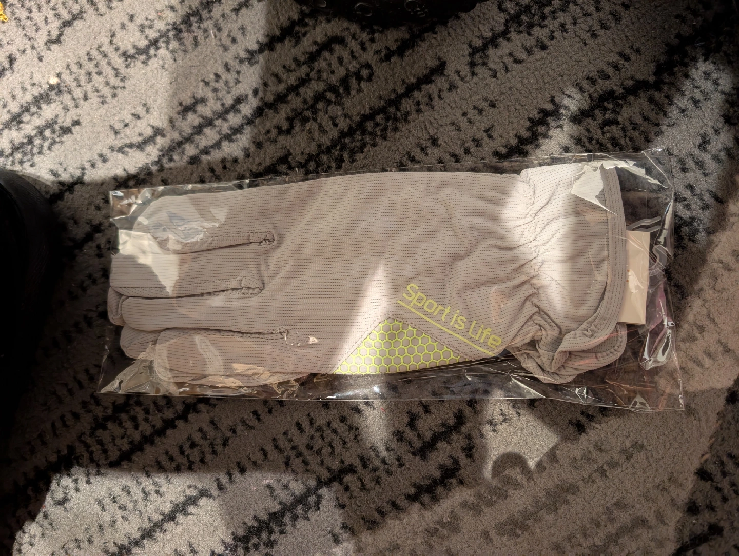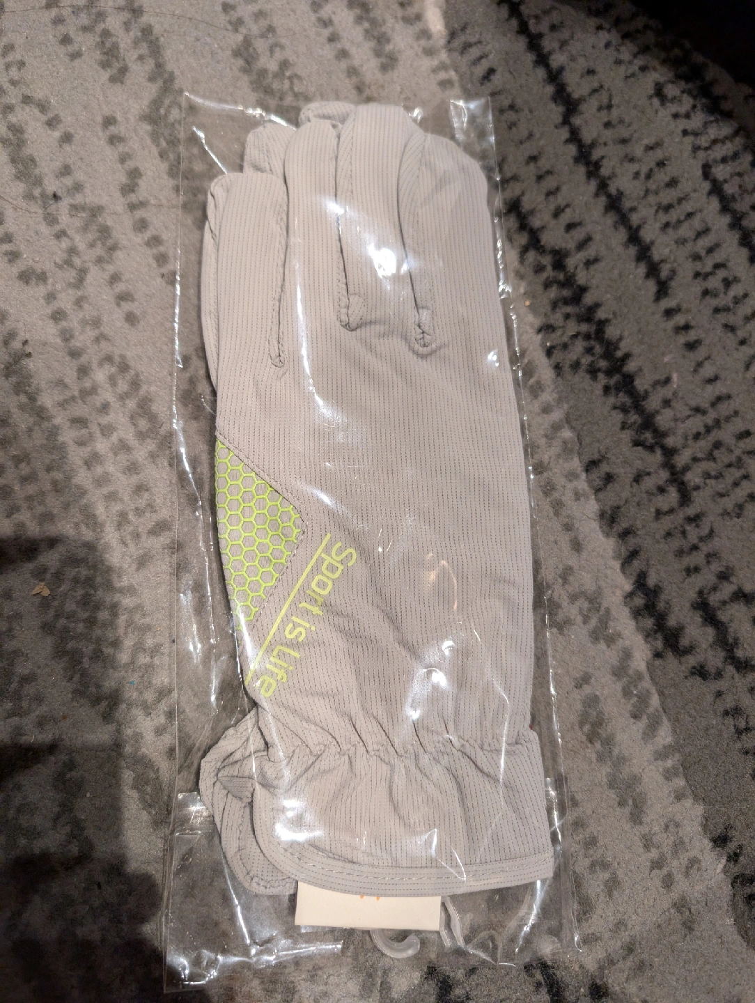 Brand new 'Sport is Life' gloves still in the original packaging! light grey color, free size and are made of a soft, flexible material, pickup in Riverbend SE