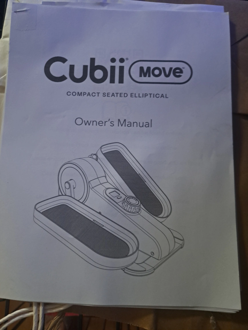 I bought this Cubii for my husband & it's been sitting in storage for a while, so it's a bit dusty. It works well & comes with a mat & the owner's manual, that I printed out/off.