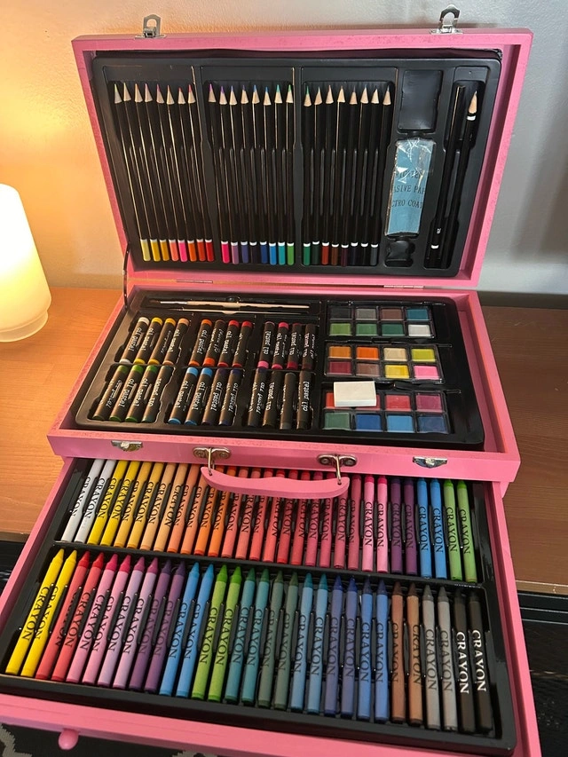 Deluxe Pink Wooden Art Set – 130+ Pieces (Like New)