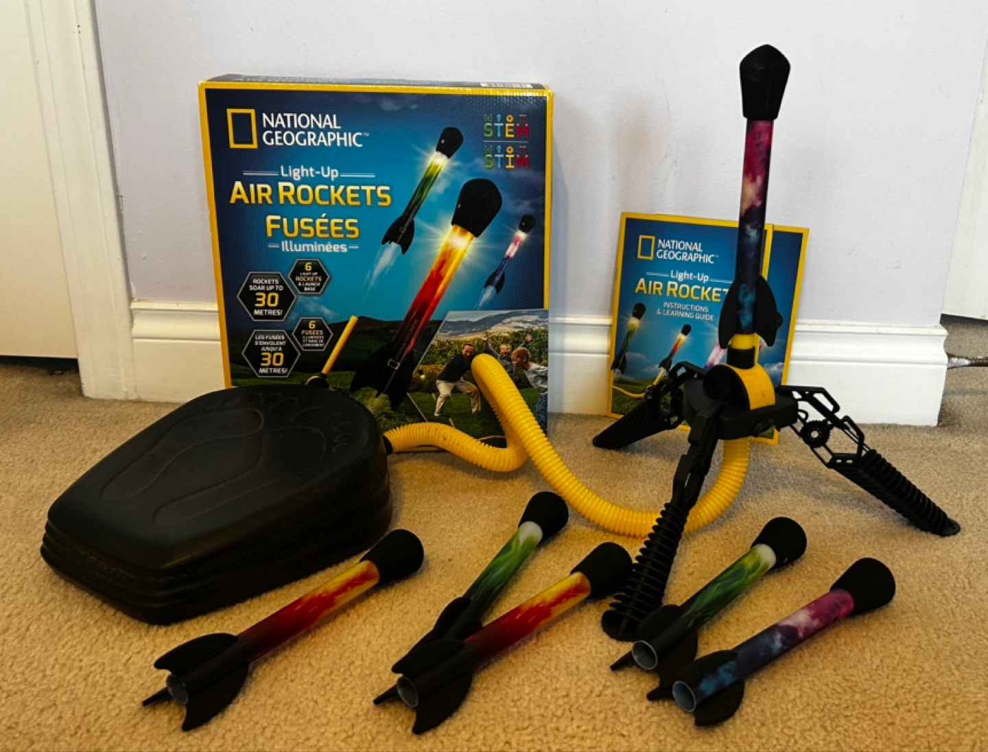 Get ready for some high-flying fun with this National Geographic Light-Up Air Rockets kit! It includes: