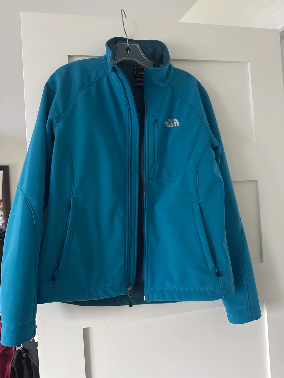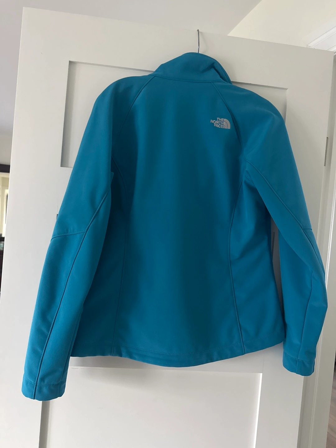 Women's The North Face softshell jacket. Size Medium. Teal blue colour. Full zip. Two front pockets. Good condition.