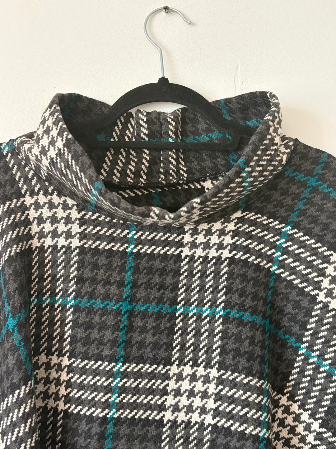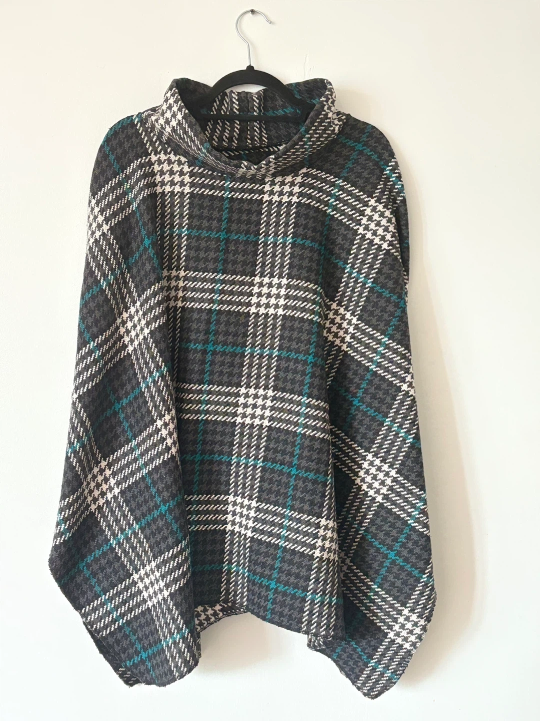 Cozy turtleneck poncho featuring a classic plaid and houndstooth pattern. It's made from a soft fabric perfect for cooler weather. This versatile piece offers a stylish layer for any outfit.💗1331 Georgia West 🤍