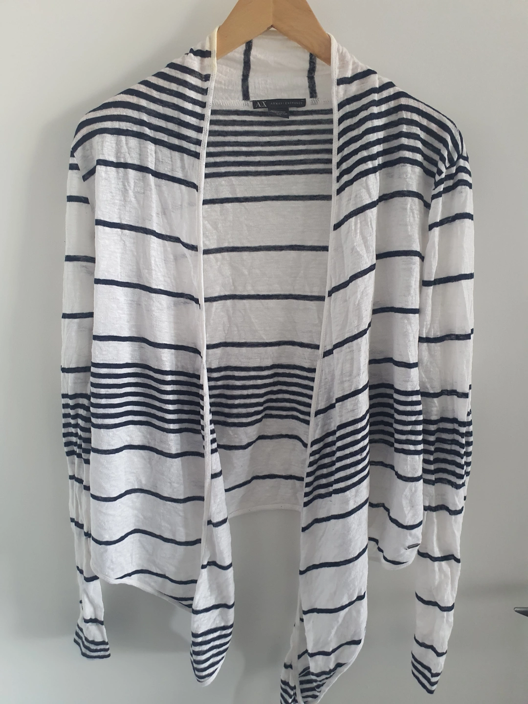 Buy & SellArmani Exchange Striped Cardigan 🧡Armani Exchange Striped Cardigan 🧡$5Women's long-sleeved cardigan. White and navy blue stripes. Open front. Lightweight material. Made in China.ConditionOkaySizemediumWHERE TO MEETStadium-Chinatown SkytrainView MapSELLERverifiedSandzDowntown16212 reviews1 chats·0 favorites·9 viewsSEND CHAT TO SELLERHi Sandz! I’m interested in your listing.Hi Sandz! I’m interested in your listing.Get the Karrot app to chatSign In to chat