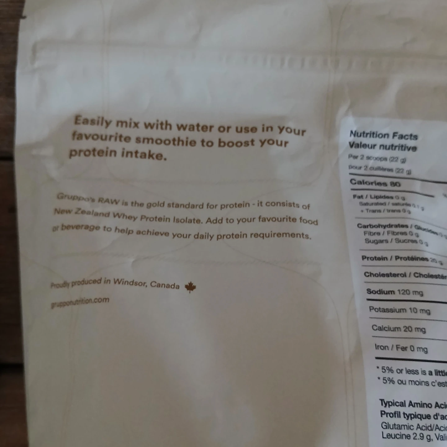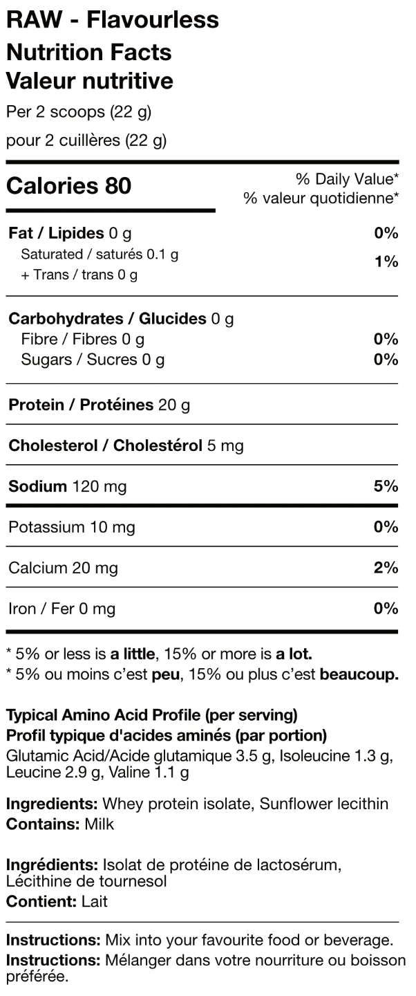 Gruppo RAW is a flavourless protein powder designed to help boost daily protein intake. It contains 20g of protein per serving. Ingredients include whey protein isolate and sunflower lecithin.Exp 07/2027