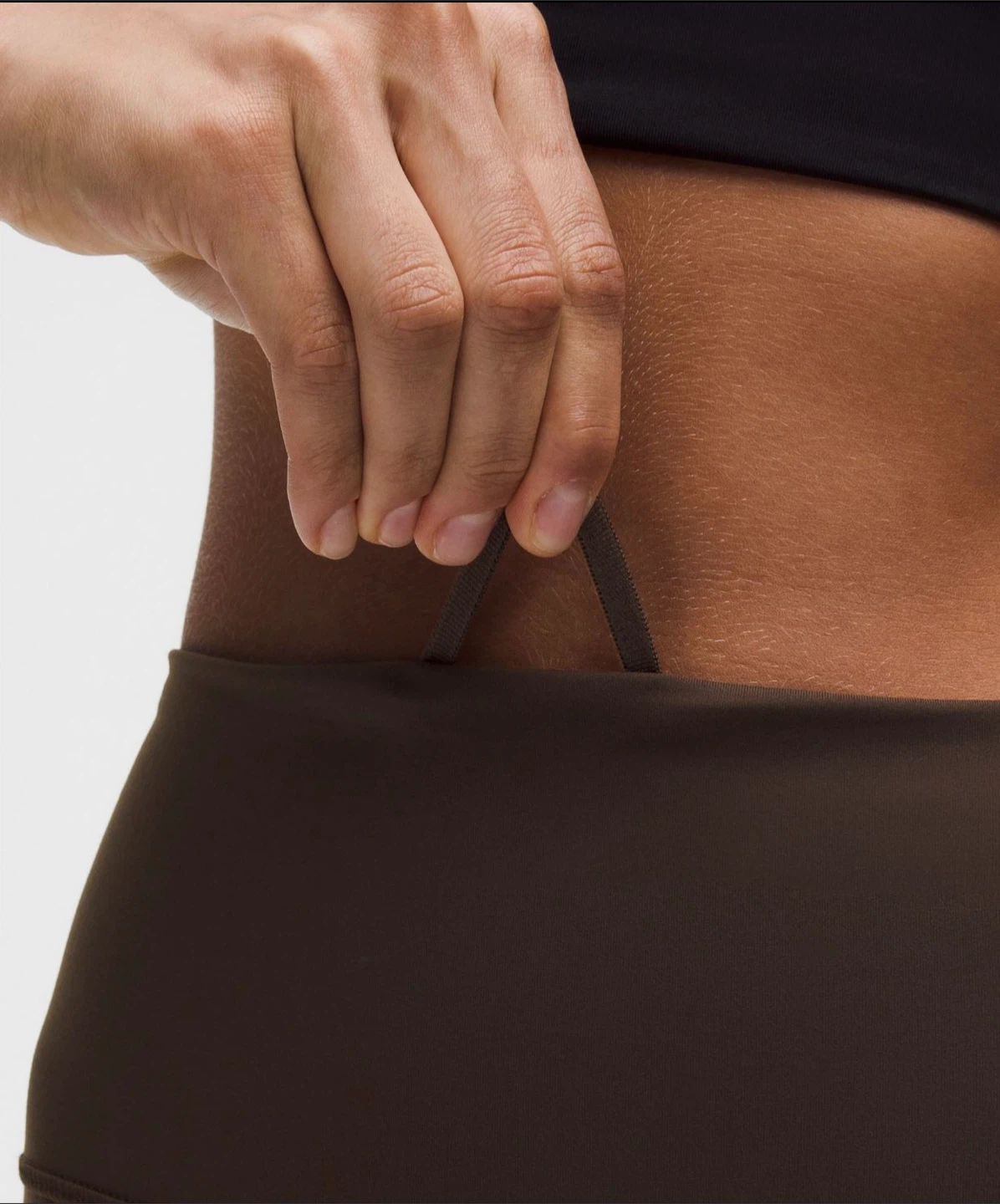 Two side drop-in pockets fit phone. Hidden pocket in the waistband has space for cards and keys. Waistband drawcord keeps leggings in place.