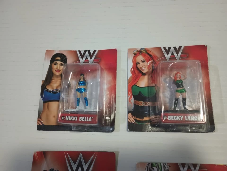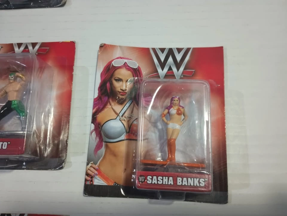 Lot of 9 WWE Nano METALFIGS die cast toy figures from Jada Toys. Set of 9 figures in sealed packages but the hang tops of packages have been cut off. Figures included are: W13 AJ STYLES, W14 KEVIN OWENS, W15 SETH ROLLINS, W16 FINN BALOR, W17 SASHA BANKS, W18 BROCK LESNAR, W19 BECKY LYNCH, W20 KALISTO, W22 NIKKI BELLA. $25 for the lot. From a smoke-free/bug-free home in Charleswood.