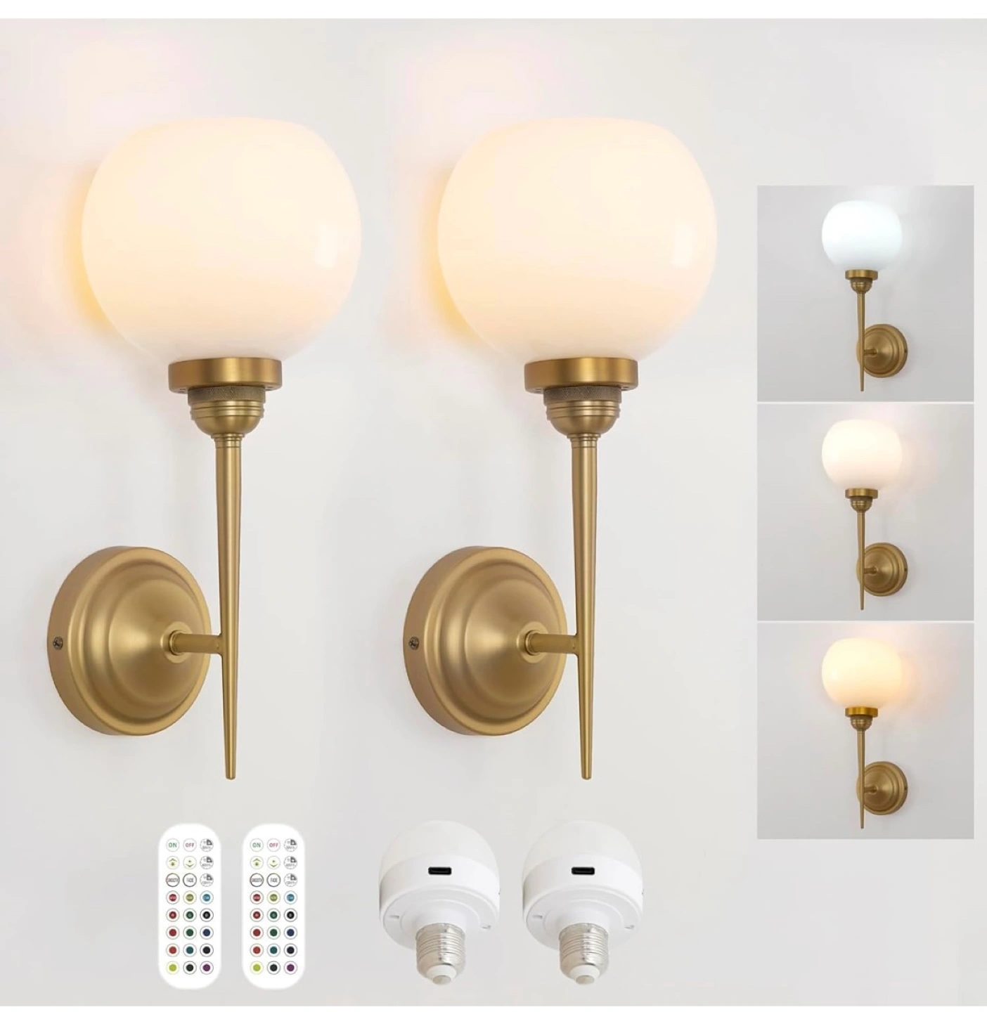 Remote control, 3 color temperature, 12 RGB colors. Rechargeable 2000mAh battery. Cordless and easy to install.