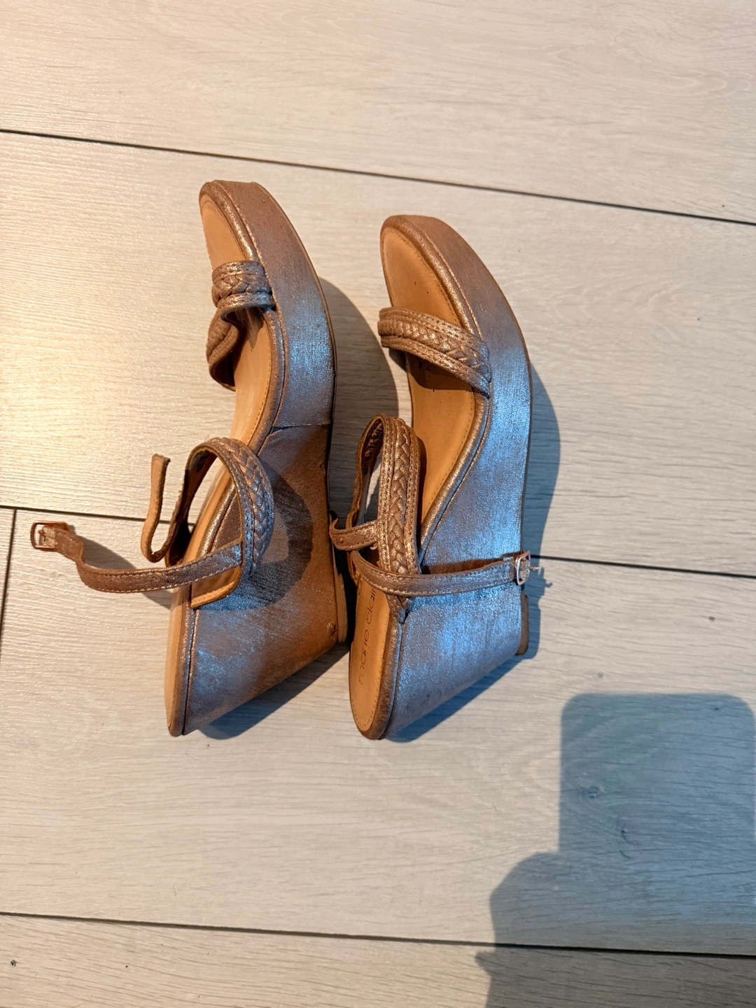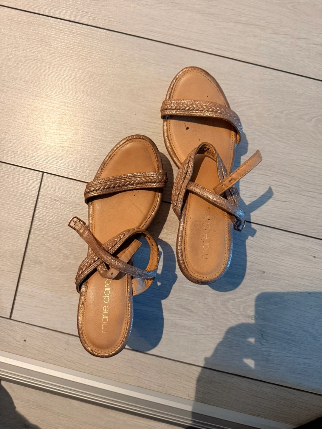 Marie Claire wedge sandals in a size 5. These are in good condition and ready for a new home! They feature a braided strap design and adjustable ankle straps