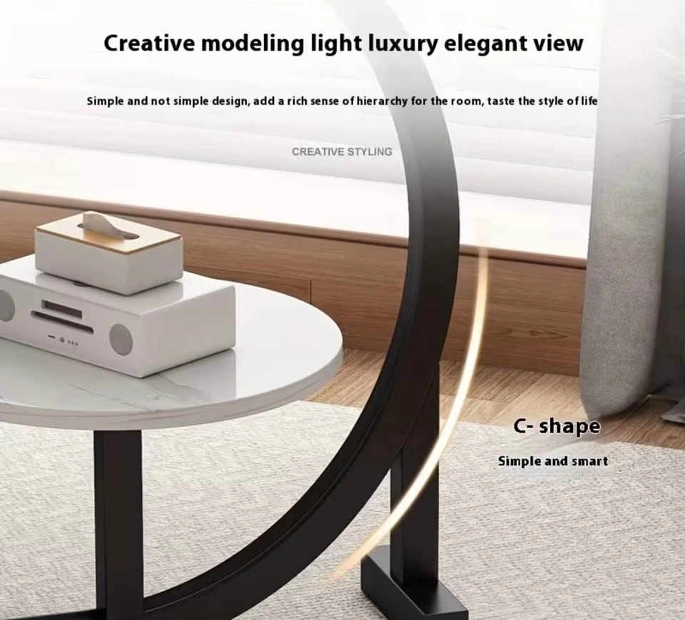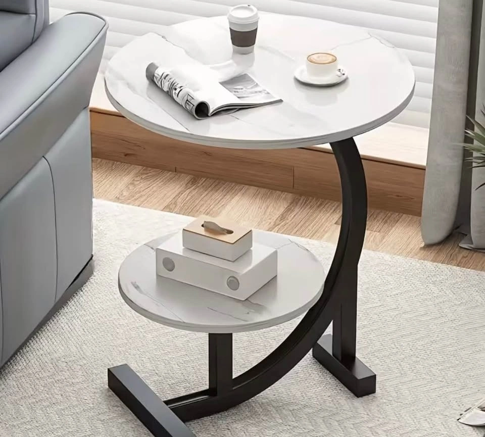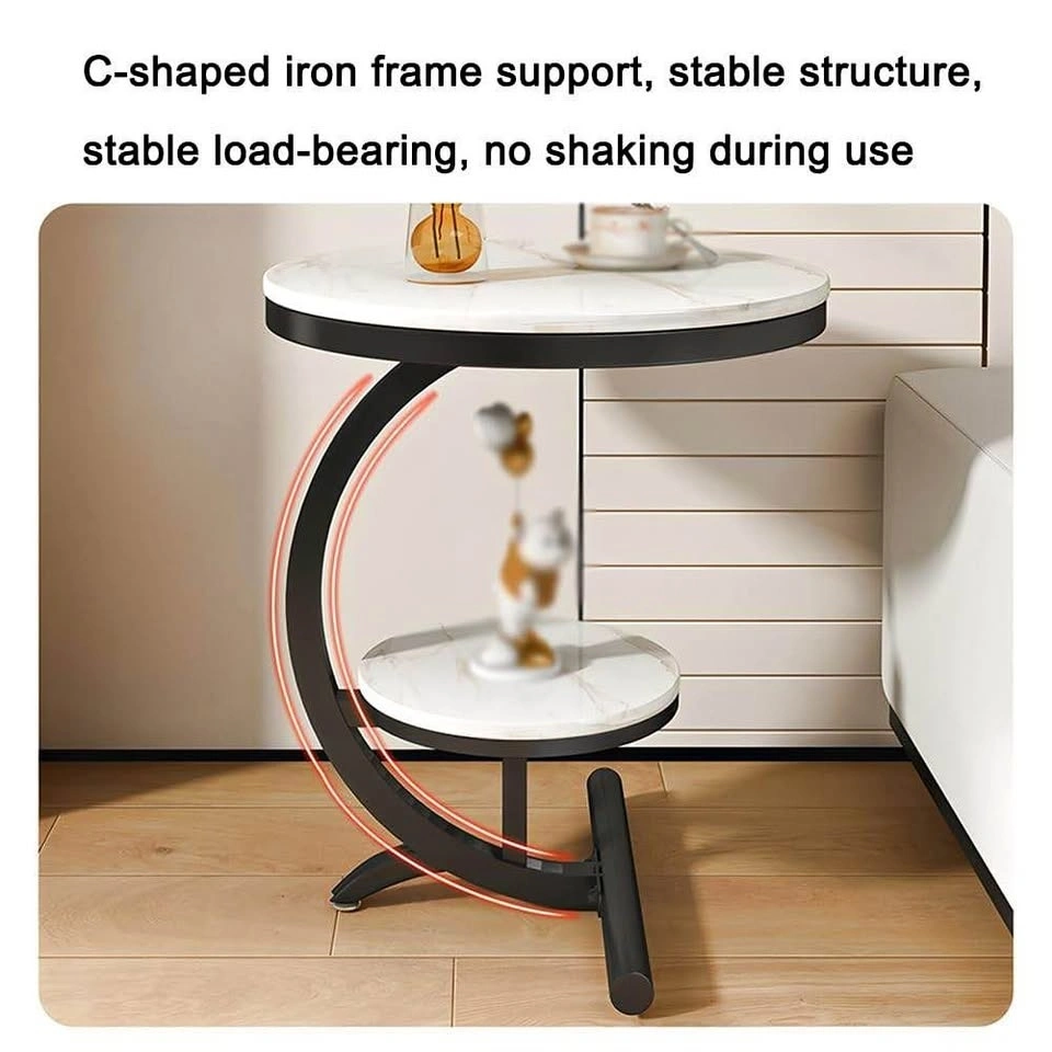 Modern light luxury double-layer side table with a metal frame. This small coffee table offers storage and can be used as a round sofa table for the living room, a bedside table for the bedroom, or on the patio. Suitable for various scenarios.