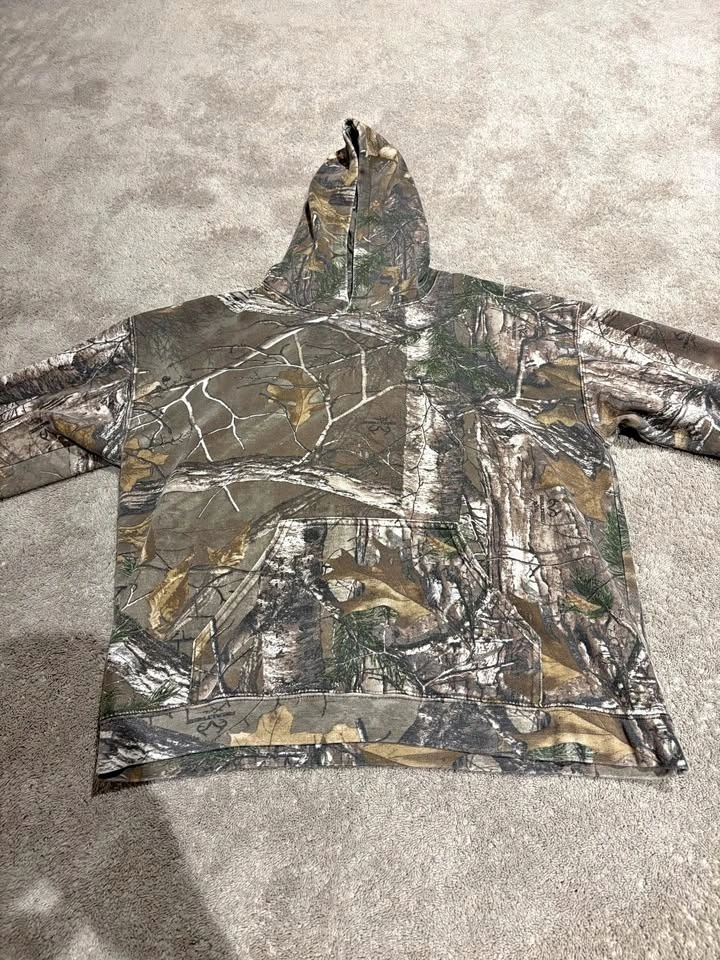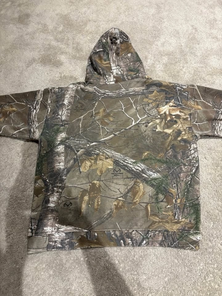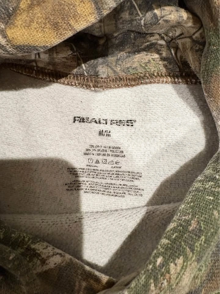 Used well in good wearable shape. Some stains barely visible. Not very noticeable. Size men’s medium, but has shrunk a little, so can fit both small and medium men’s.