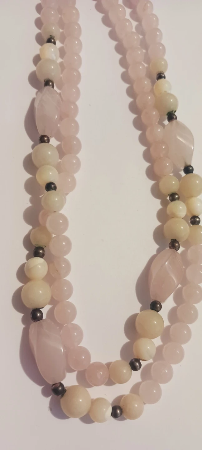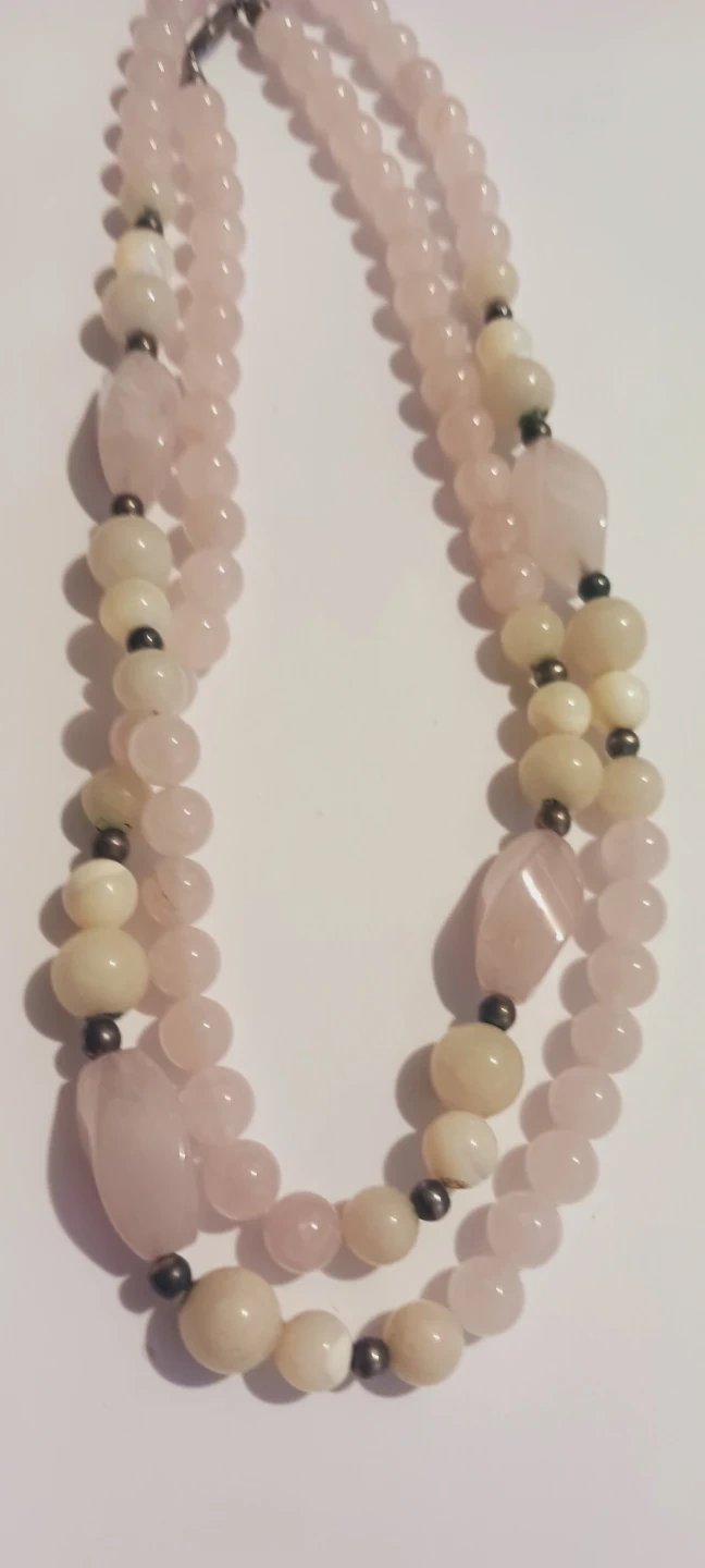 Genuine Rose Quartz & Mother of Pearl Beaded Necklace