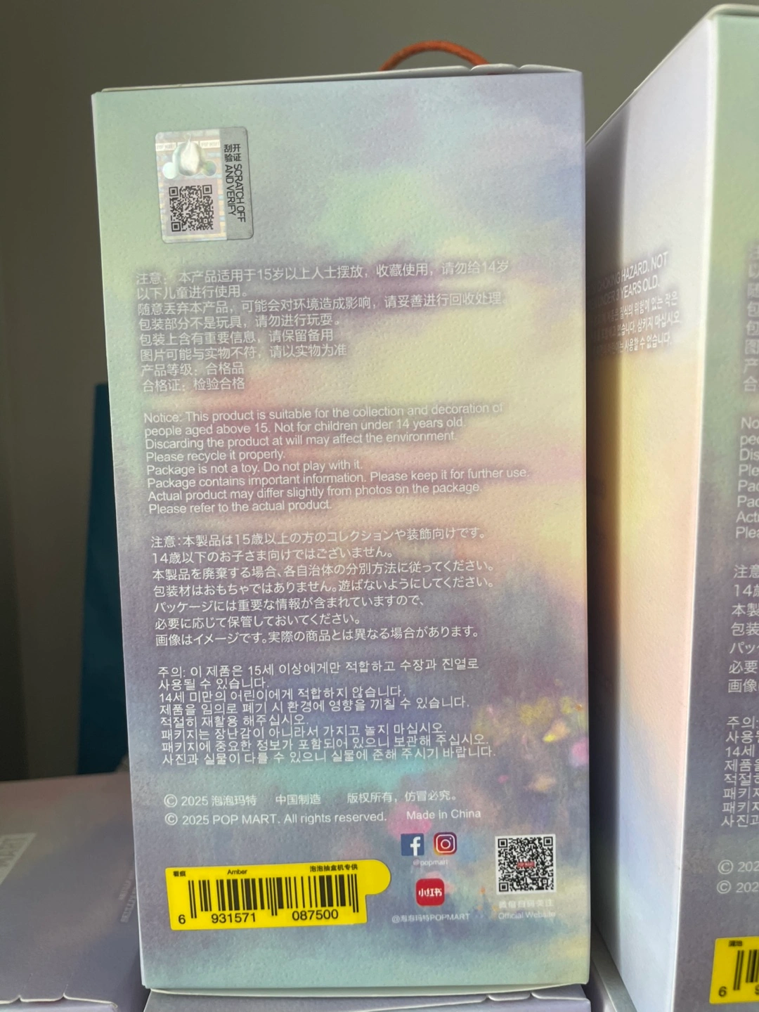 On hand, sealed, brand new in box, bought directly from Pop Mart / Pop Now - comes with yellow bar code sticker with ID (see photo)