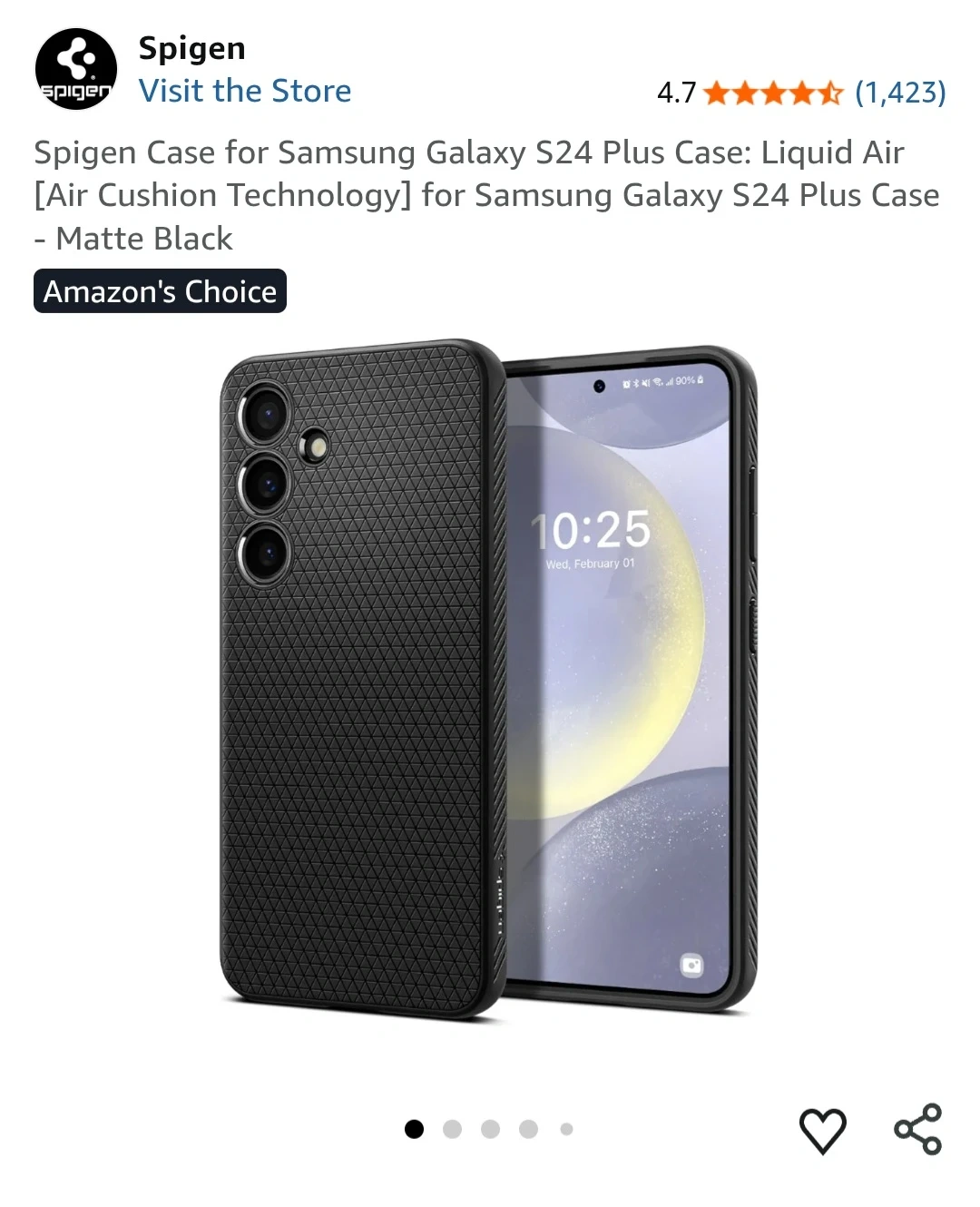 Spigen Liquid Air case for Samsung Galaxy S24 Plus. Features Air Cushion Technology. Matte black colour. Offers excellent protection for your phone.