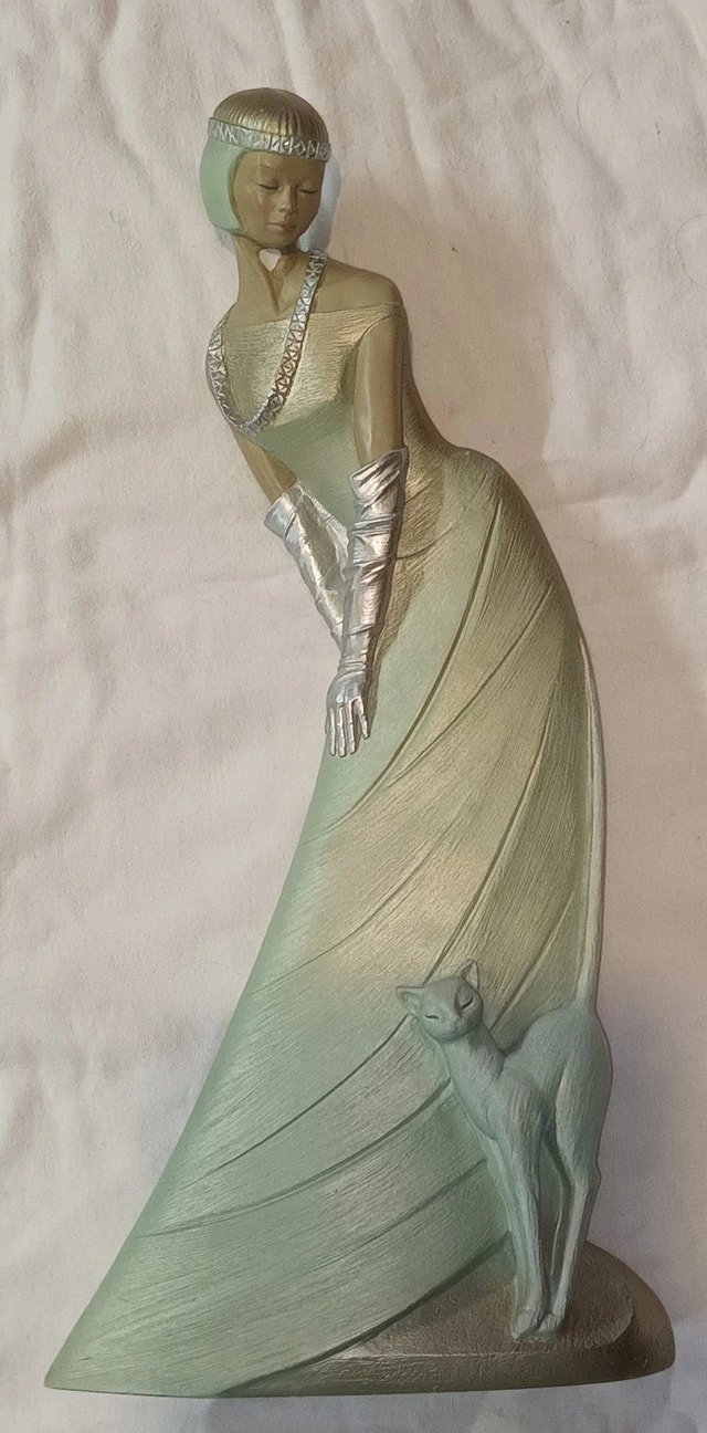 Ivory Princess Figurine by Ed Van Roselan for Parastone, 1995. Features a lady with a cat. Measures 9.5x19". Has a small chip under her chin and some marks at the bottom, as shown in the photos. Located in Summerside, SE London. Smoke-free home. Message to arrange a pickup.