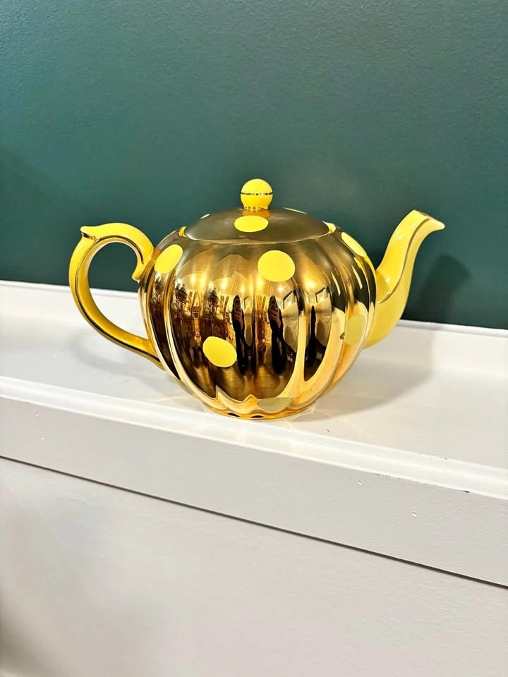 Gold with yellow polka dots Gibsons Staffordshire England teapot. Pick up available in Mt Lehman (Mon - Fri 7am-2:30pm), Walnut Grove (Mon - Fri 4pm-8pm), or Chilliwack (can be arranged). Thanks for looking and check out my other listings ⭐️