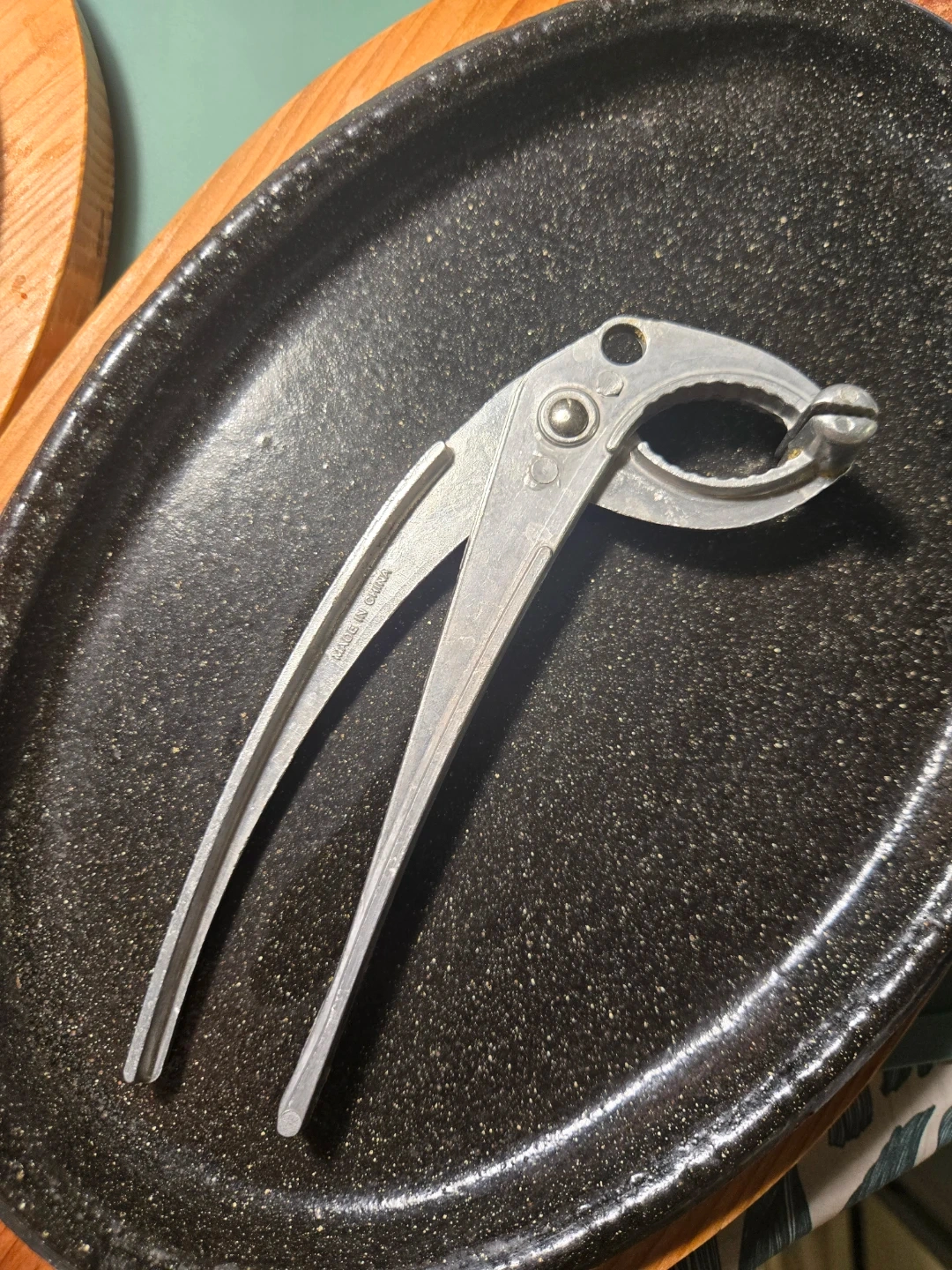 These oval cast iron sizzling platters come with wooden bases. They're great for serving hot dishes straight from the oven or stove. A metal plates holder is also included.