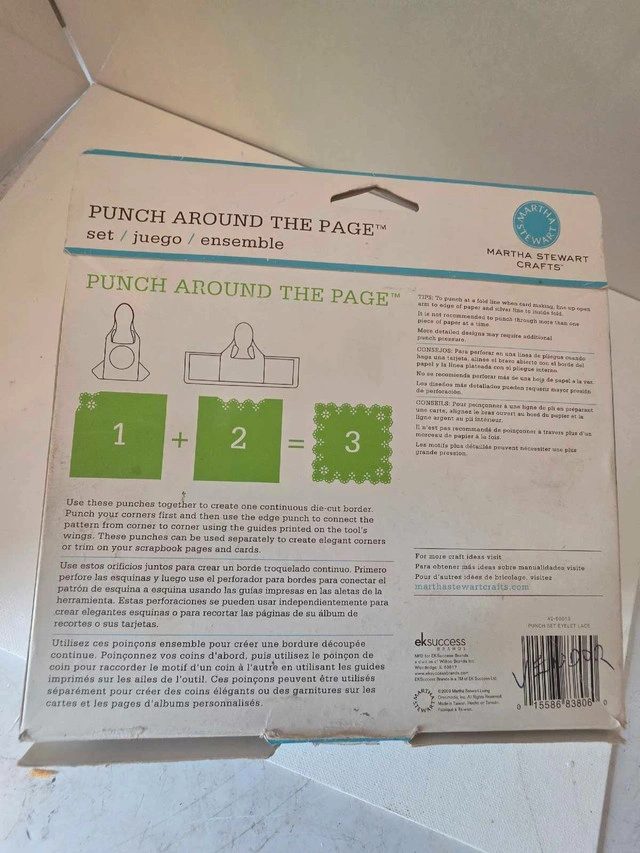 Click on photos to get better view. Create beautiful and intricate borders with this Martha Stewart Crafts Punch Around the Page set. This set includes two punches in the 'Eyelet Lace' design, allowing you to easily add a decorative edge to your paper crafts. You can make a continuous border all around the paper.