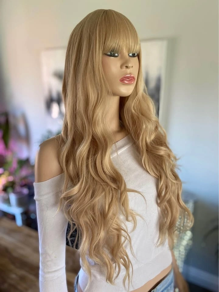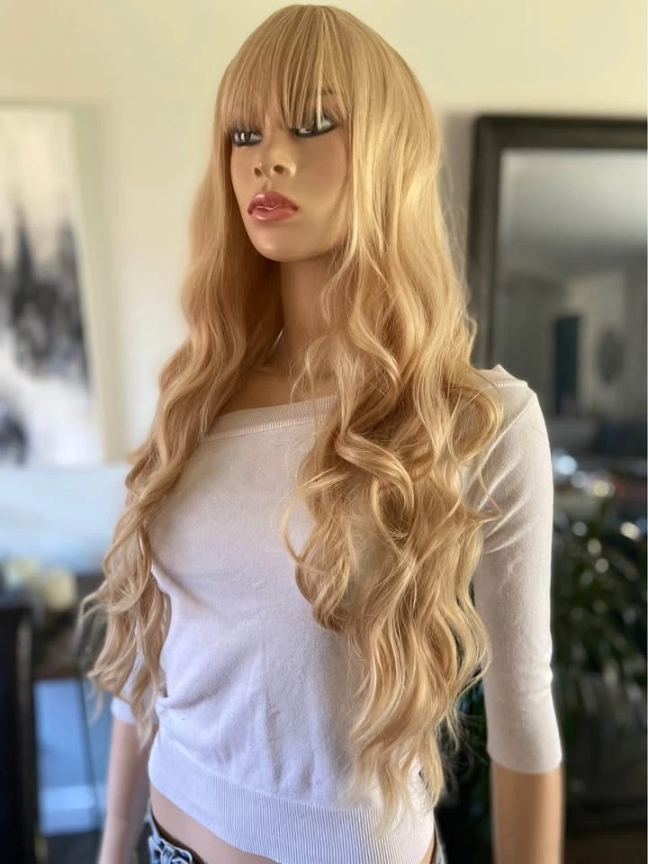 NWOT: 26” Long Wavy Solid Sleeping Beauty Barbie Blonde Synthetic Wig with Bangs (2295)