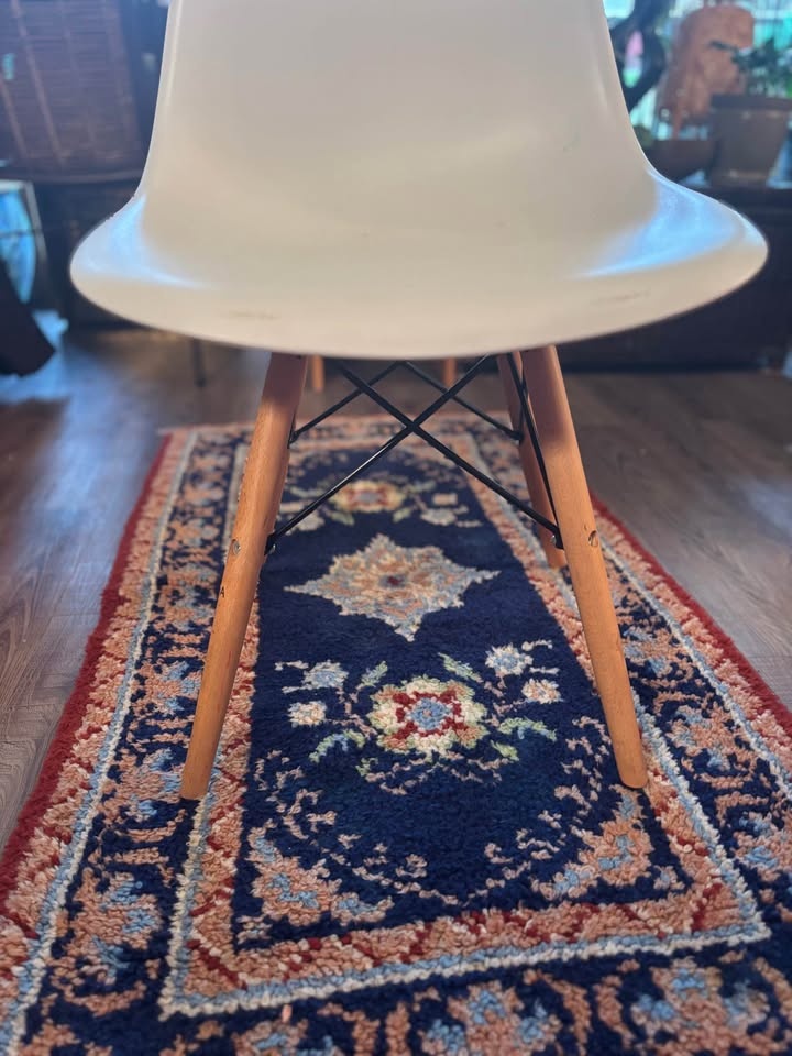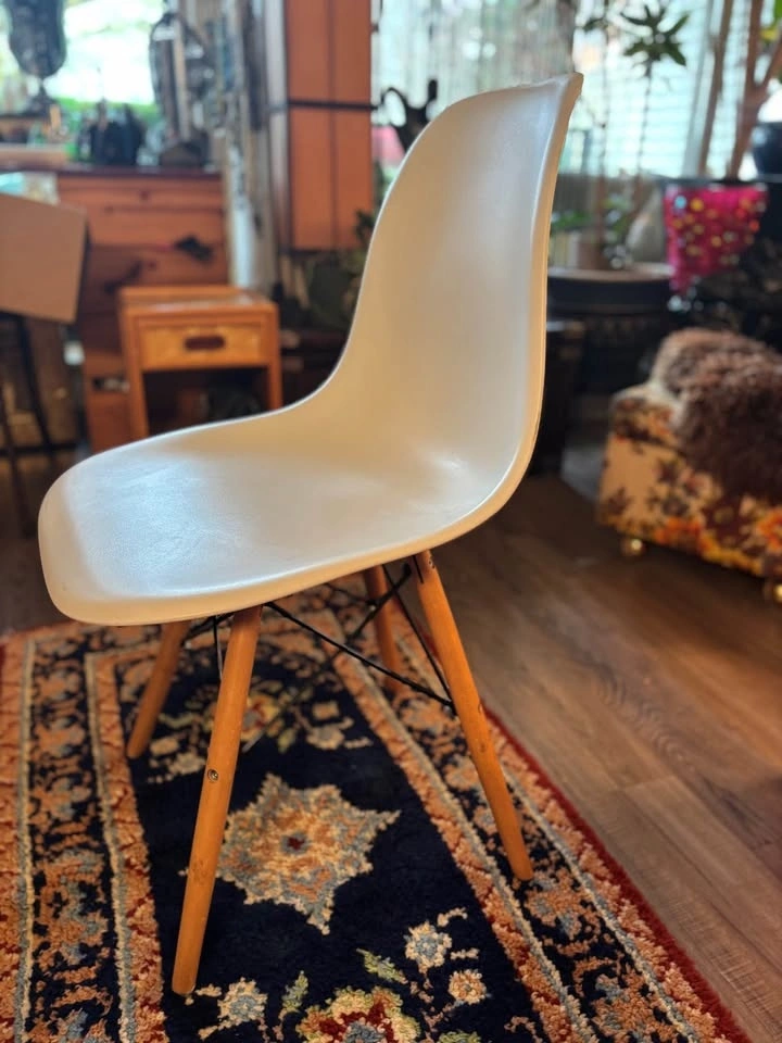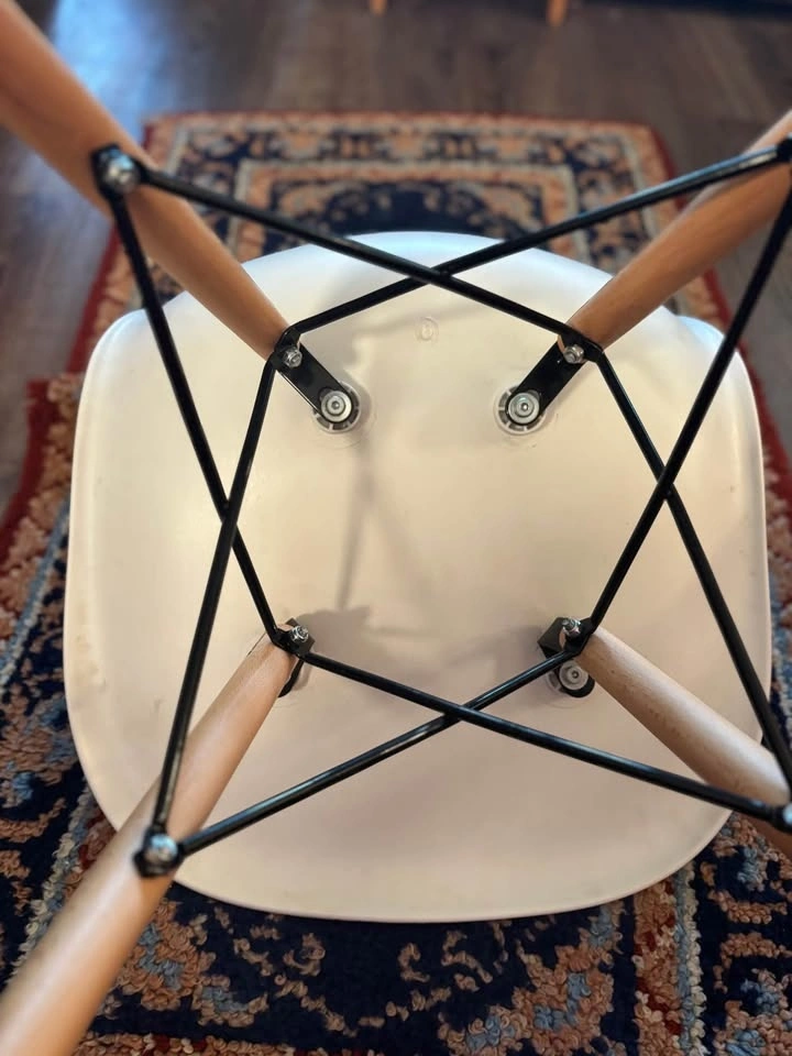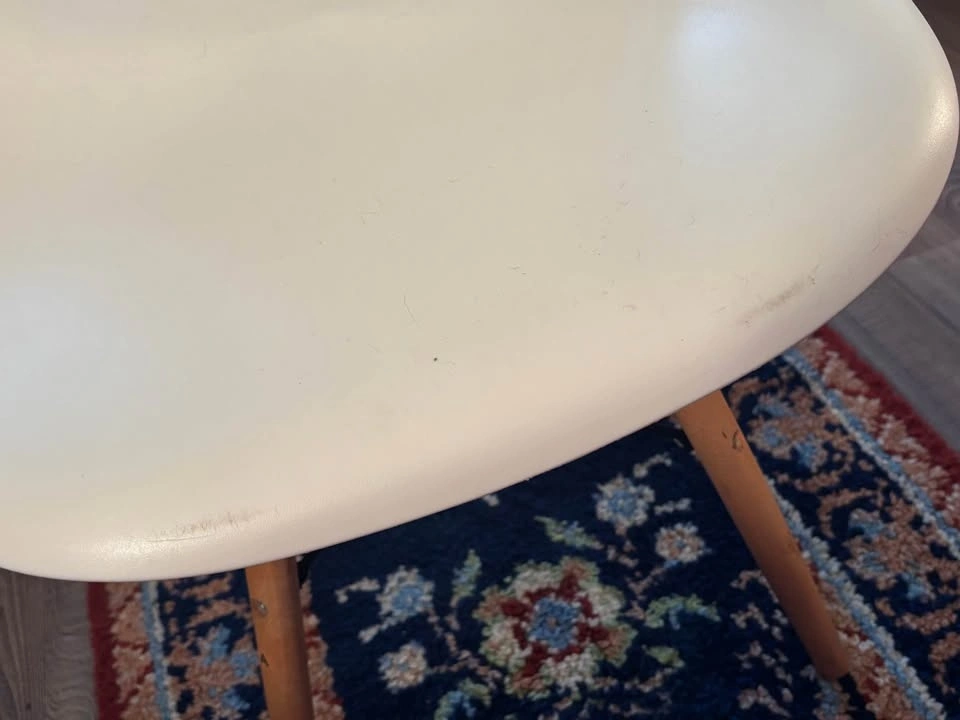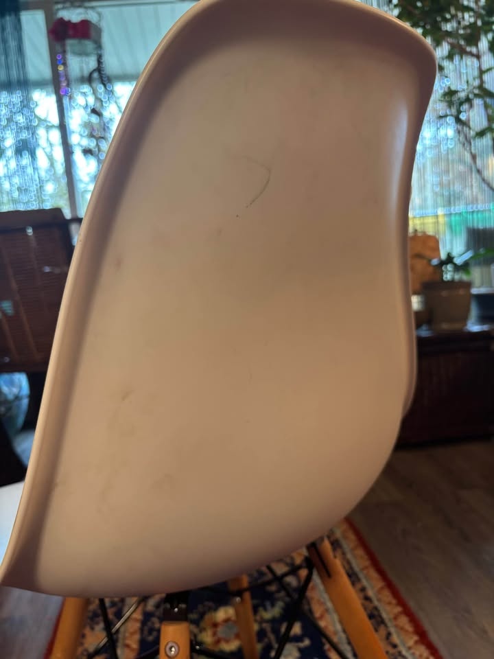 Modern IKEA molded shell chair with solid wood dowel legs and black metal support frame. Classic Scandinavian design — lightweight, minimalist, and versatile. Perfect for: Kids desk or homework station, Office desk, Dining table, Vanity, Entryway or bedroom accent. Comfortable curved seat with sturdy wooden legs. Gently used. Some light scuffs and minor surface marks on the white shell (shown in photos). Structurally solid and fully functional. Height approx: 31”, Width approx: 18”. Easy to clean and move. This is an IKEA Eames-style molded plastic chair with wooden dowel legs — commonly sold by IKEA under models like: LEIFARNE (older molded shell versions), JANINGE (similar molded style), Or an older IKEA “Eames-inspired” shell chair (they’ve rotated names over the years). Pickup only by Kensington square in north Burnaby.