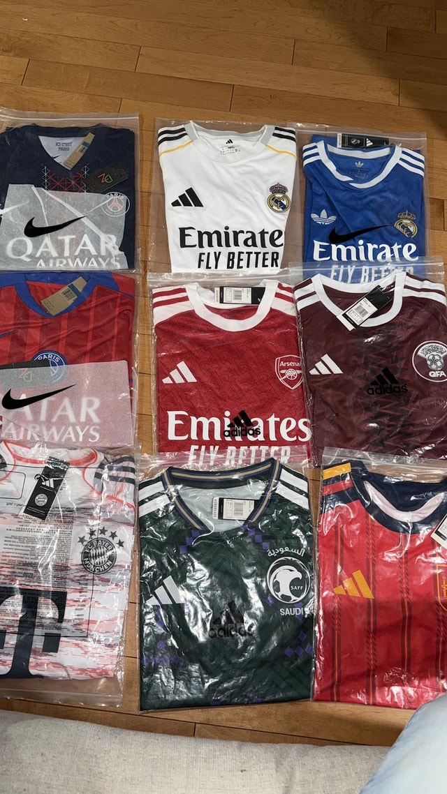 Massive selection of high-quality soccer jerseys from multiple countries, perfect for game day or any occasion. These are premium quality with thick, breathable fabric and strong stitching. Available in many countries and sizes, including kids'. Message me with the country and size you're looking for, and I'll check availability. Great for World Cup watch parties, gifts, or collectors. Pickup in Waterloo. Bulk deals available for 5+ jerseys. If you decide it's not for you, returns are accepted as long as the jersey is unused with tags still on.
