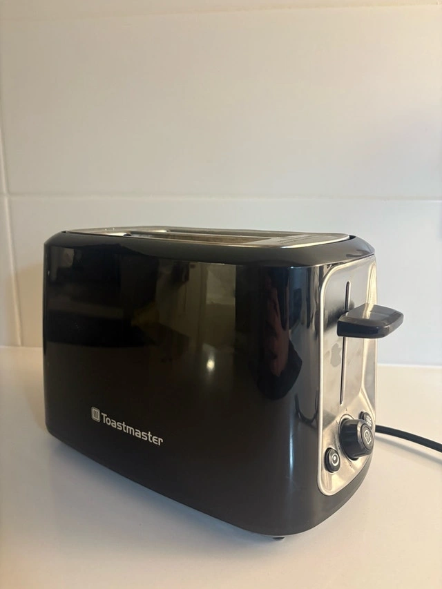 This is a used Toastmaster toaster in good condition, perfect for quickly making toast, bagels, and more. It features multiple settings for browning and a removable crumb tray for easy cleaning. It's been a reliable kitchen companion and is ready for a new home. Specifications: Brand: Toastmaster, Colour: Black/Silver, Slots: 2. Cash accepted.