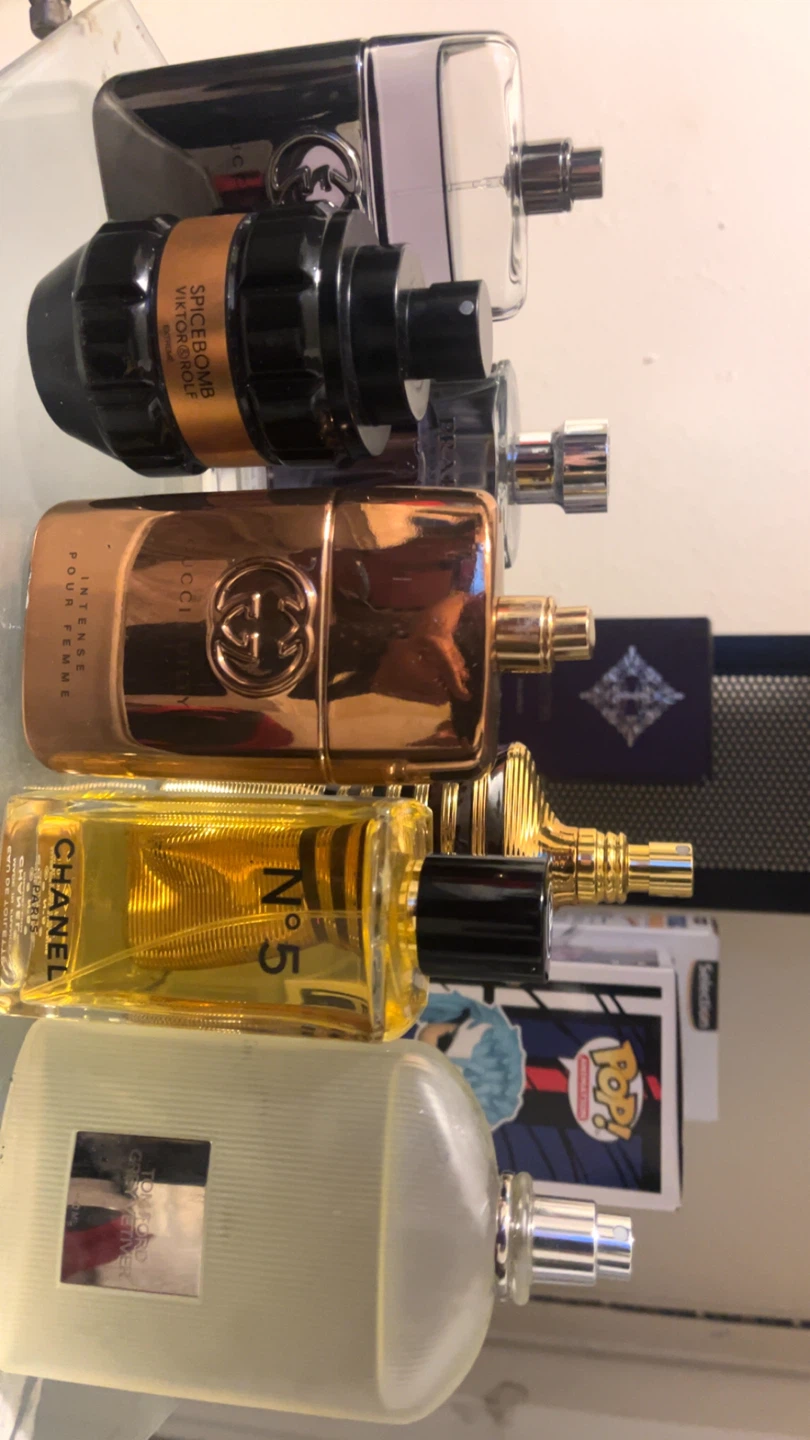 Selling a bundle of designer colognes and perfumes. Includes brands like Chanel No.5, Gucci Intense, Viktor & Rolf Spicebomb and others. Bottles are partially used but still have a lot left in them. Great if you want a variety of scents or to add to a collection.