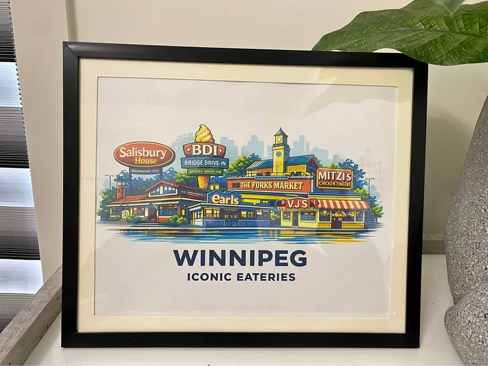 Add a piece of Winnipeg charm to your home, office, or restaurant! This stylish framed print features some of Winnipeg’s iconic eateries including Salisbury House, BDI, The Forks Market, Mitzi’s Chicken Fingers, Earl’s, and VJ’s Drive Inn. A perfect décor piece for locals or anyone who loves the city. Details: Frame size: 8” x 10”. Can be hung on the wall or placed on a table/shelf. Clean, modern black frame. Great for home, office, café décor, or gift. Price: $15 (Firm – no offers). Pickup: Near Sage Creek / Island Lakes / Bonavista. Bring a little Winnipeg nostalgia into your space!