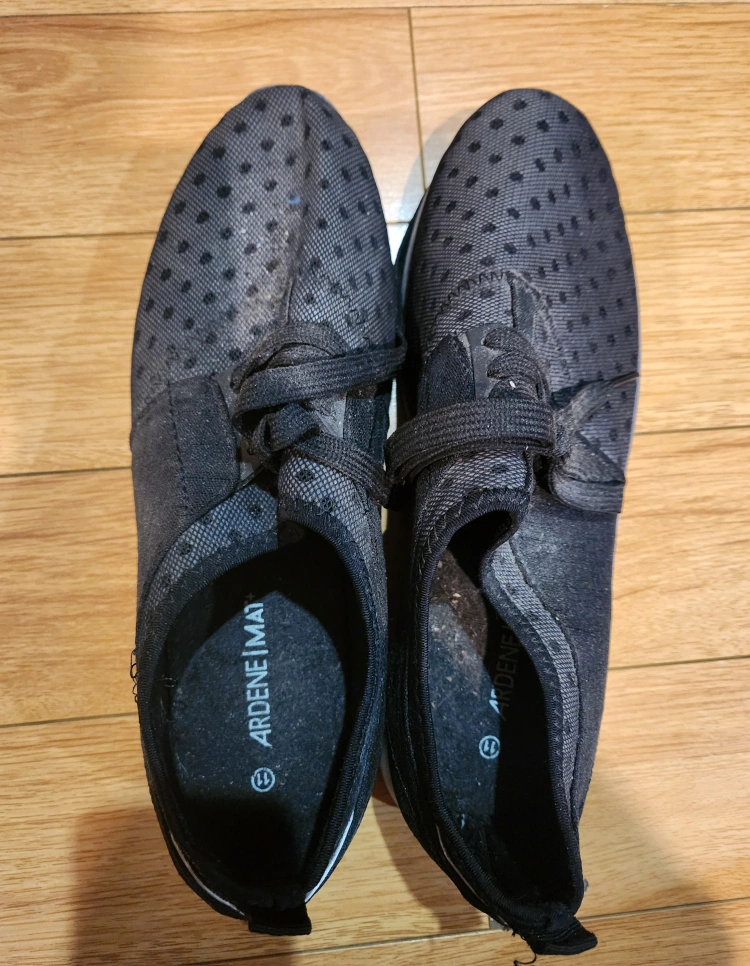 Only worn once. Dusty cause they've been sitting around for a year. Black mark on front bottom of shoe is NOT a hole. It's just a mark that isn't noticeable once worn.