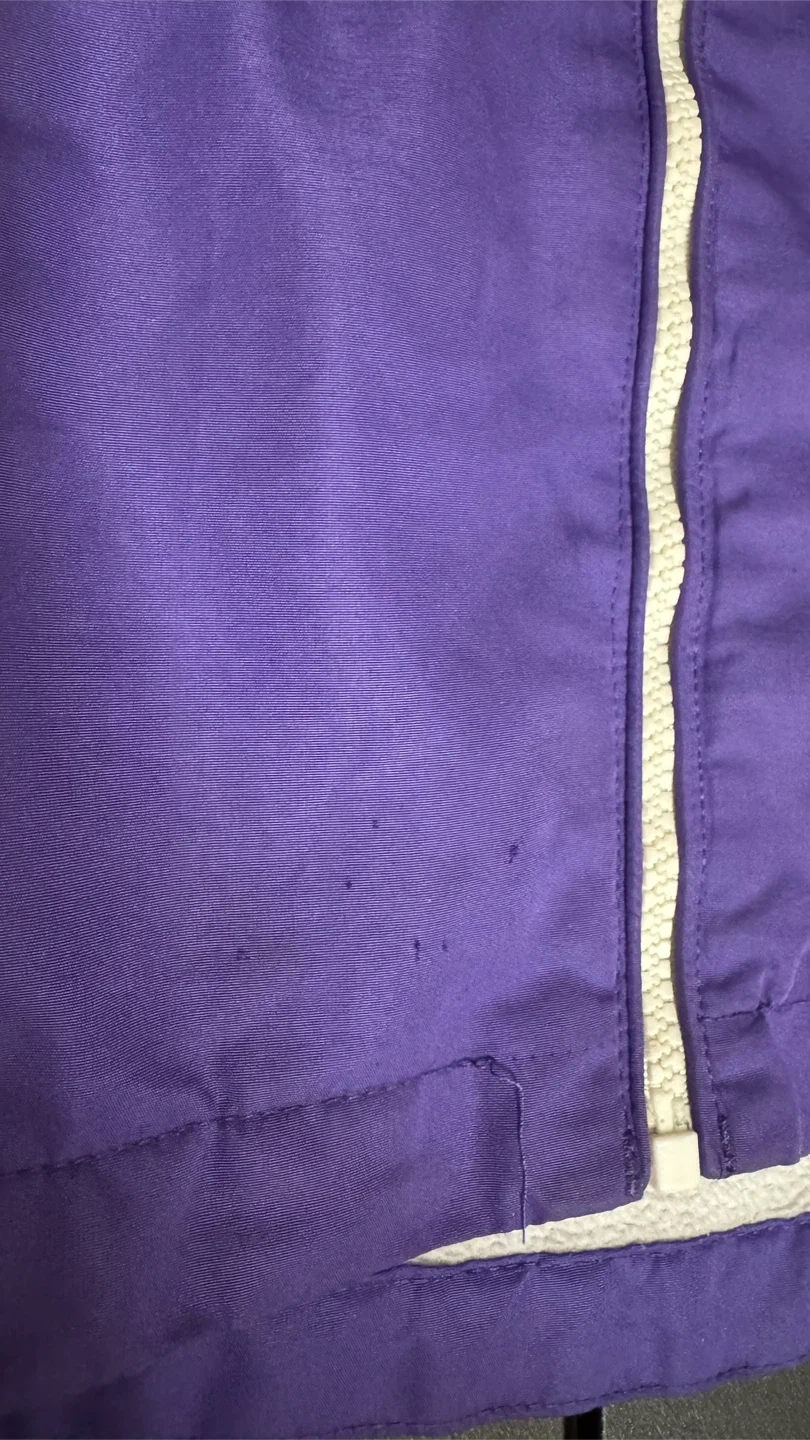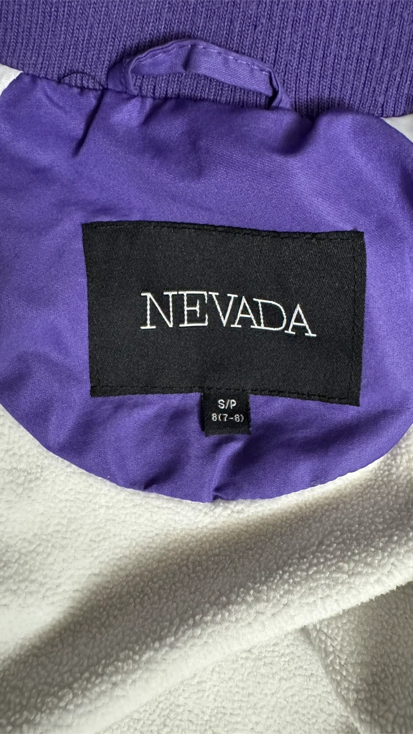 Nevada purple hooded jacket for kids. It's a size S/P, equivalent to 8(7-8) years. Features a full zip front and zippered pockets. This jacket's outer shell is made of a durable material, suitable for cooler weather. It's great for everyday wear or outdoor activities.