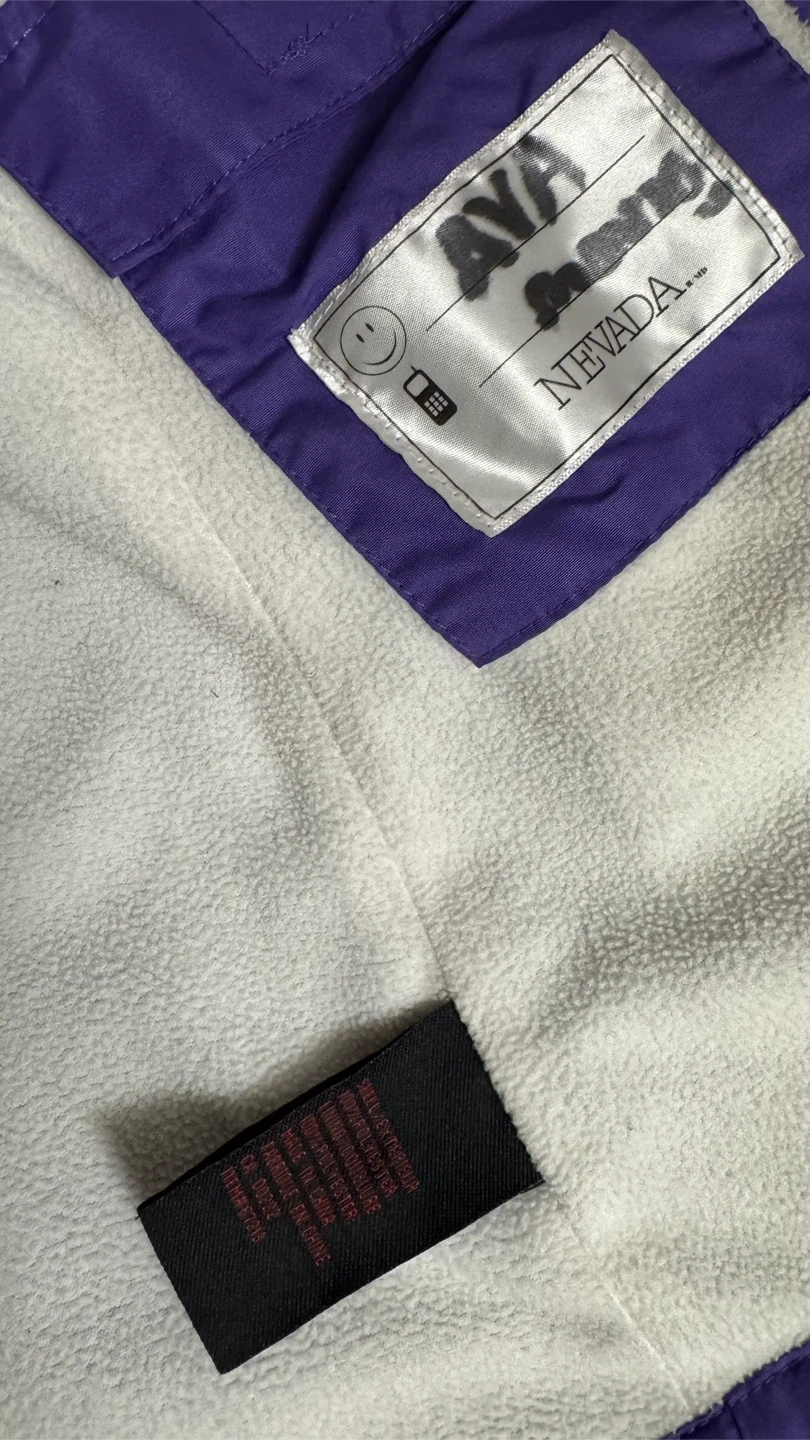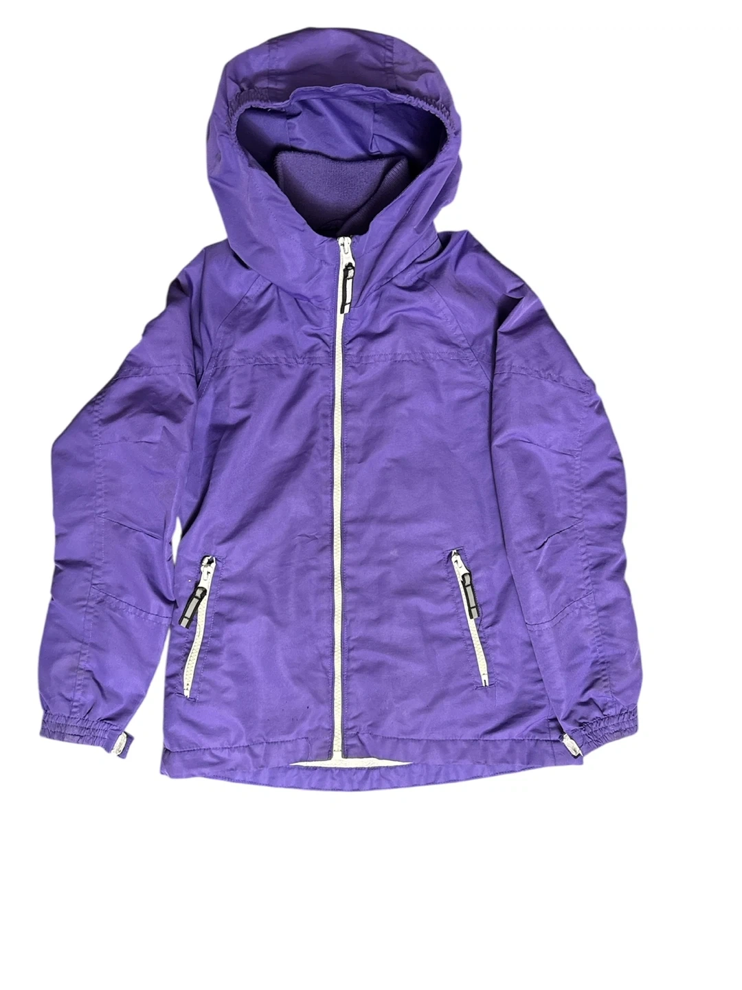 Nevada purple hooded jacket for kids. It's a size S/P, equivalent to 8(7-8) years. Features a full zip front and zippered pockets. This jacket's outer shell is made of a durable material, suitable for cooler weather. It's great for everyday wear or outdoor activities.